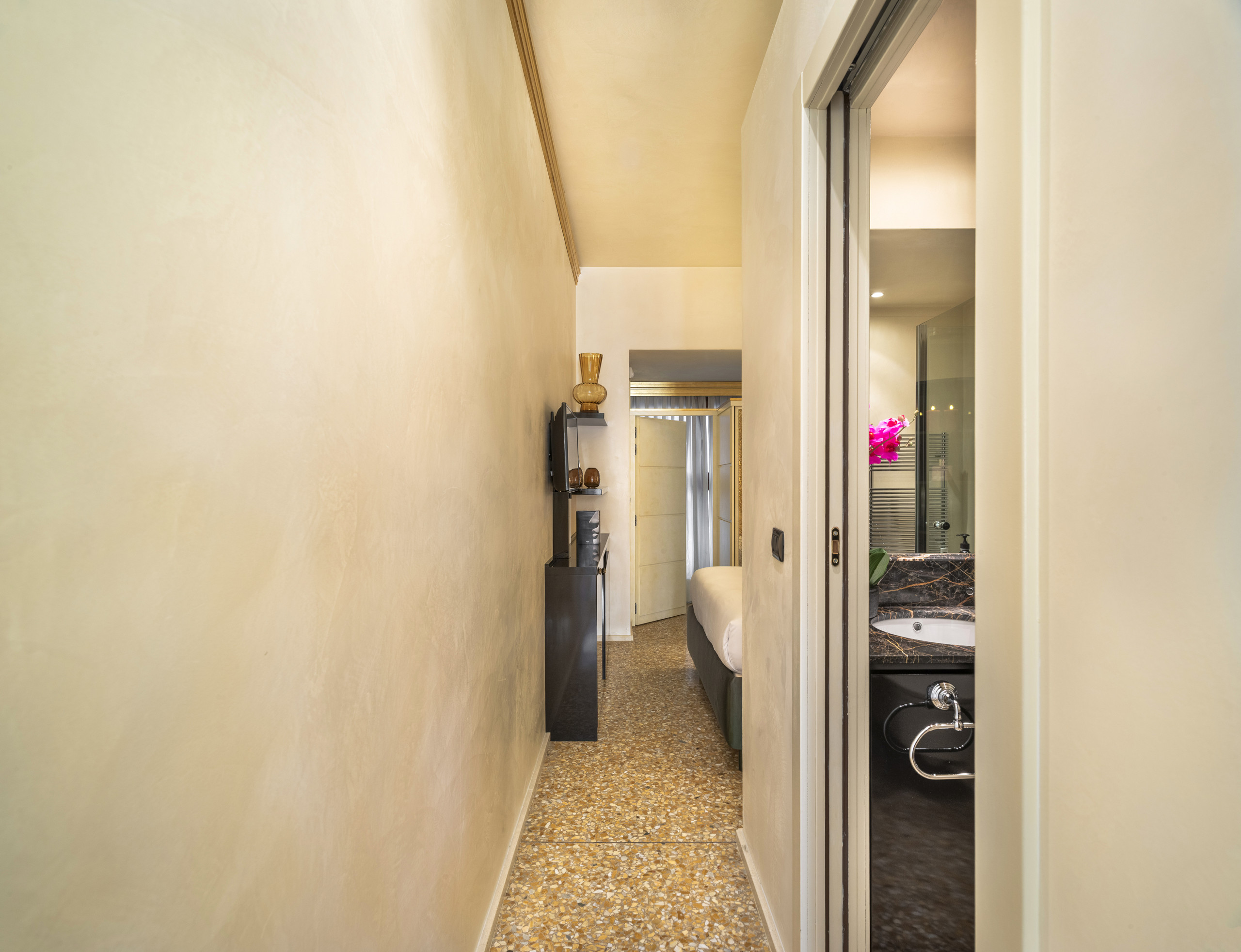 Nel cuore di Venezia, questo incantevole appartamento offre un'esperienza unica grazie alla sua vista mozzafiato sul Canal Grande. Situato in un elegante palazzo dotato di ascensore, l'appartamento è molto luminoso e accogliente, ideale per una coppia o per chi desidera vivere un soggiorno romantico nella città lagunare. Dispone di una terrazza privata dove godere di momenti di relax ammirando il passaggio delle gondole e l'atmosfera magica di Venezia. All'interno si trovano una camera matrimoniale confortevole, un bagno moderno con doccia e un soggiorno con tavolo da pranzo, perfetto per gustare una cena con vista. Un piccolo rifugio raffinato dove charme e posizione si uniscono per offrire un soggiorno indimenticabile.