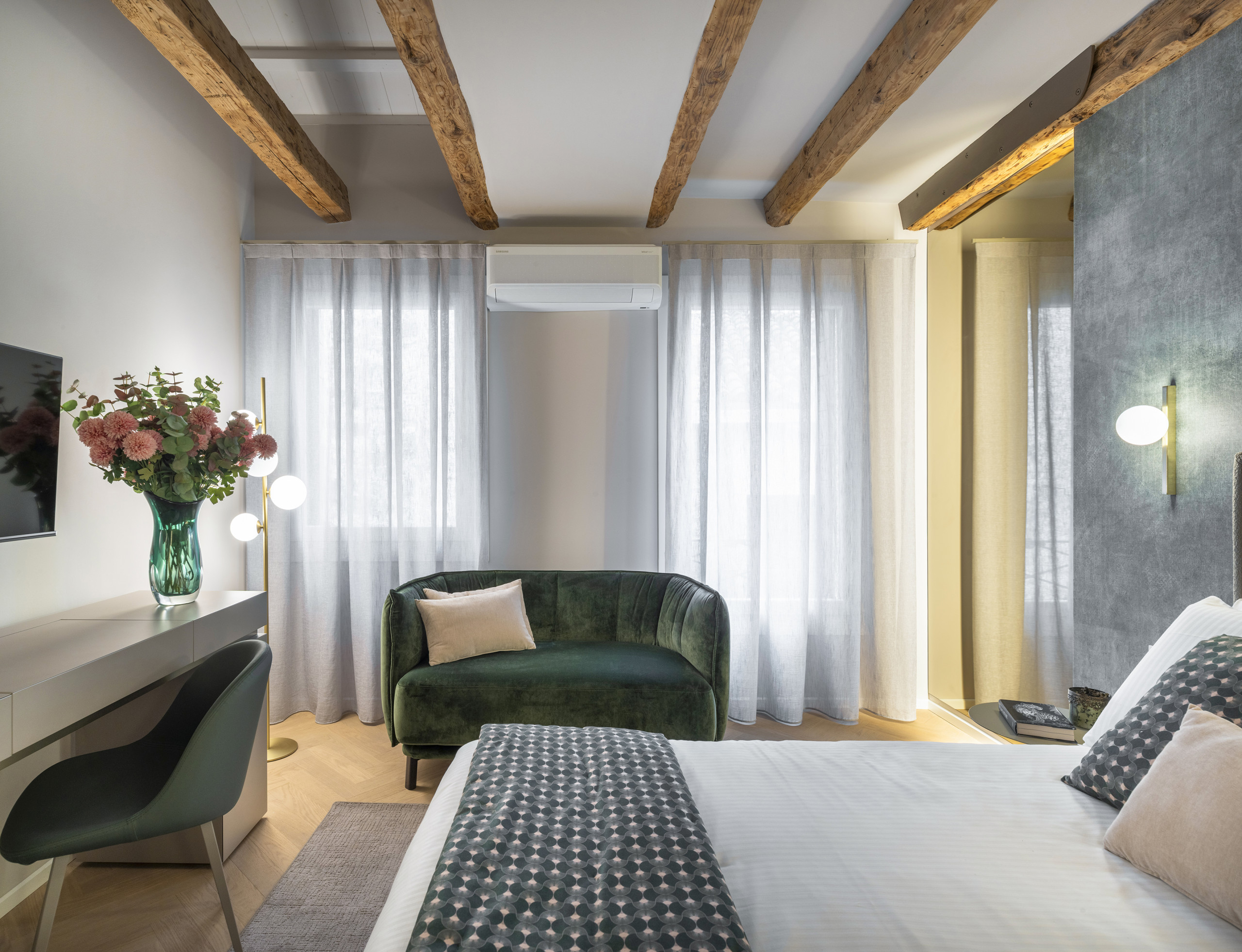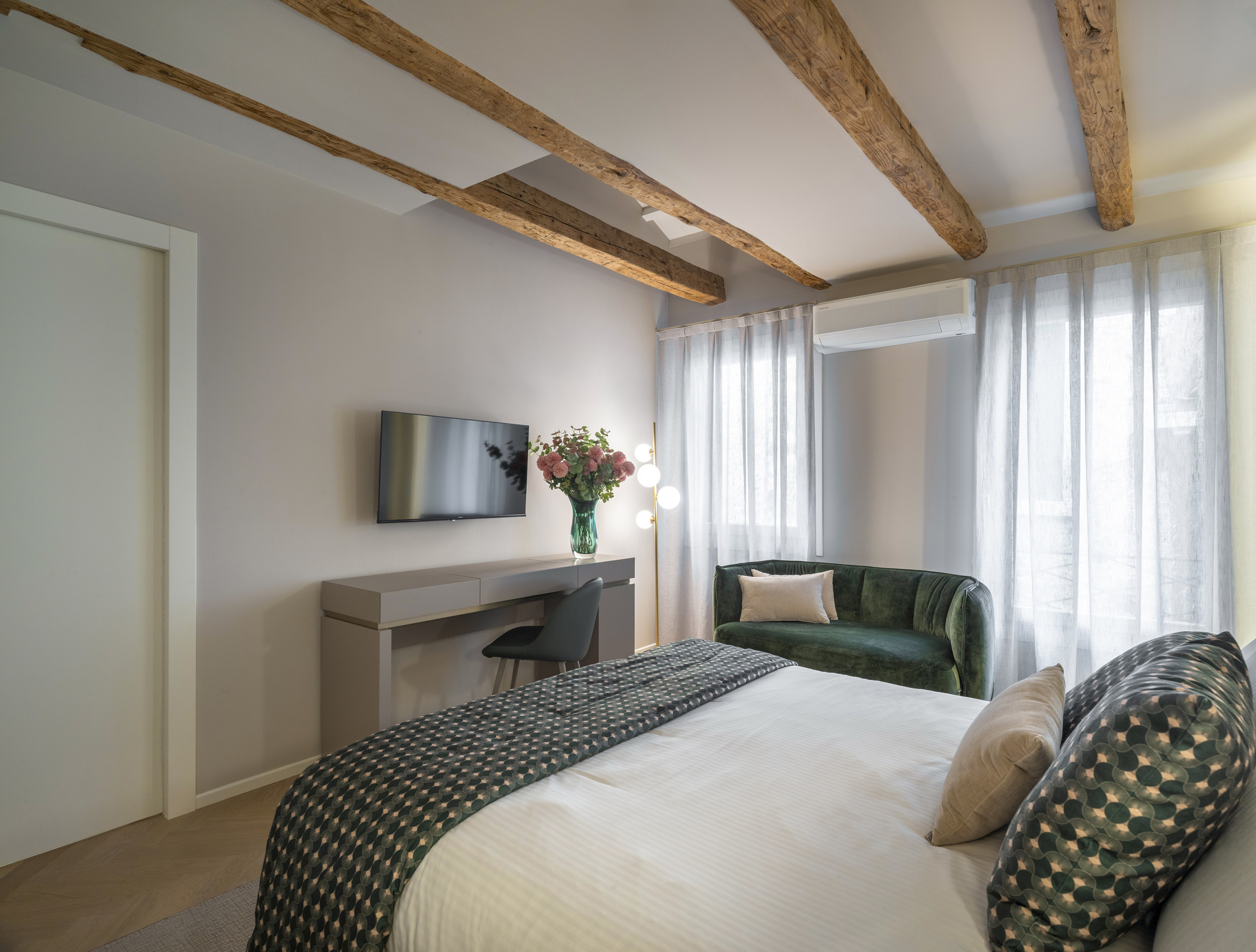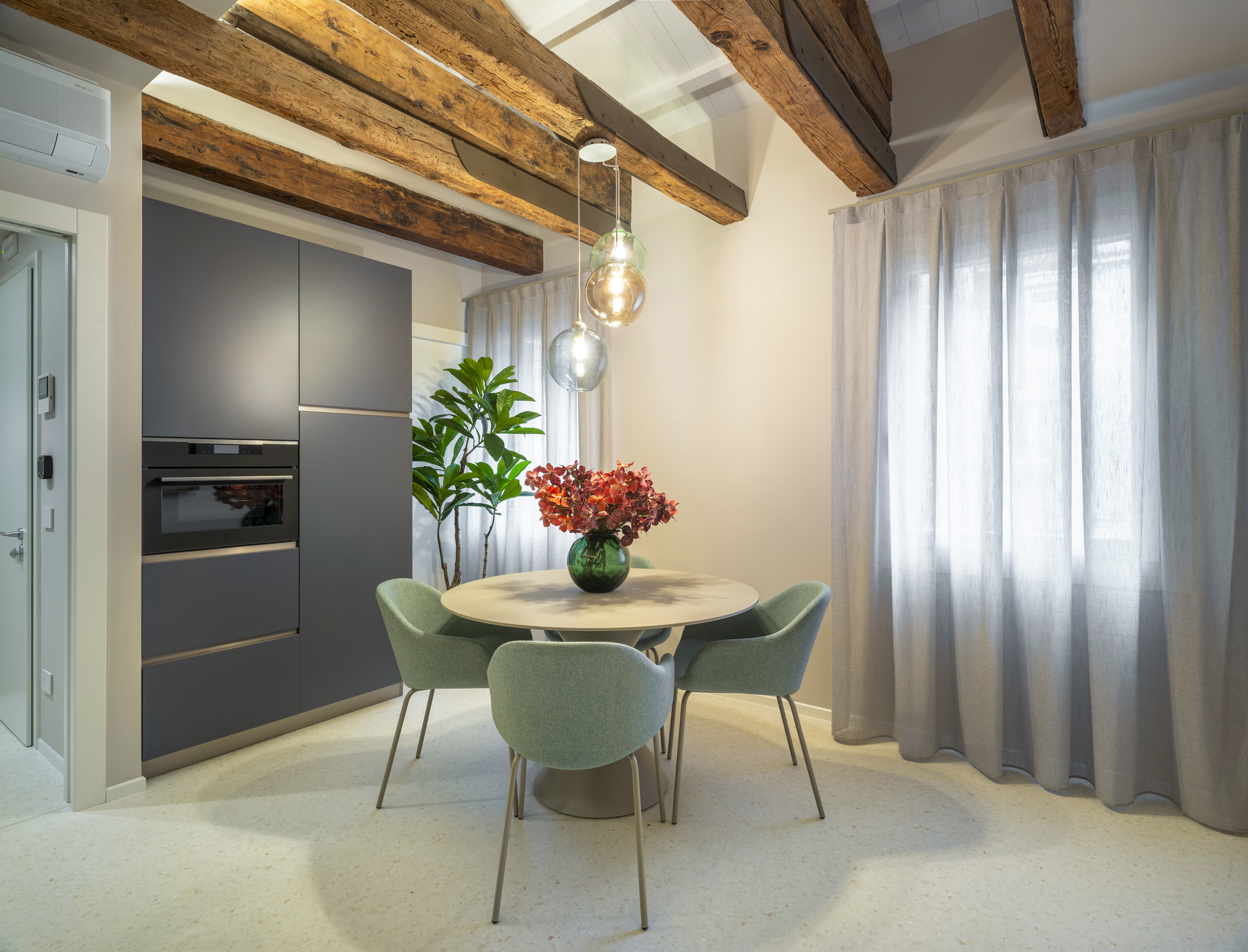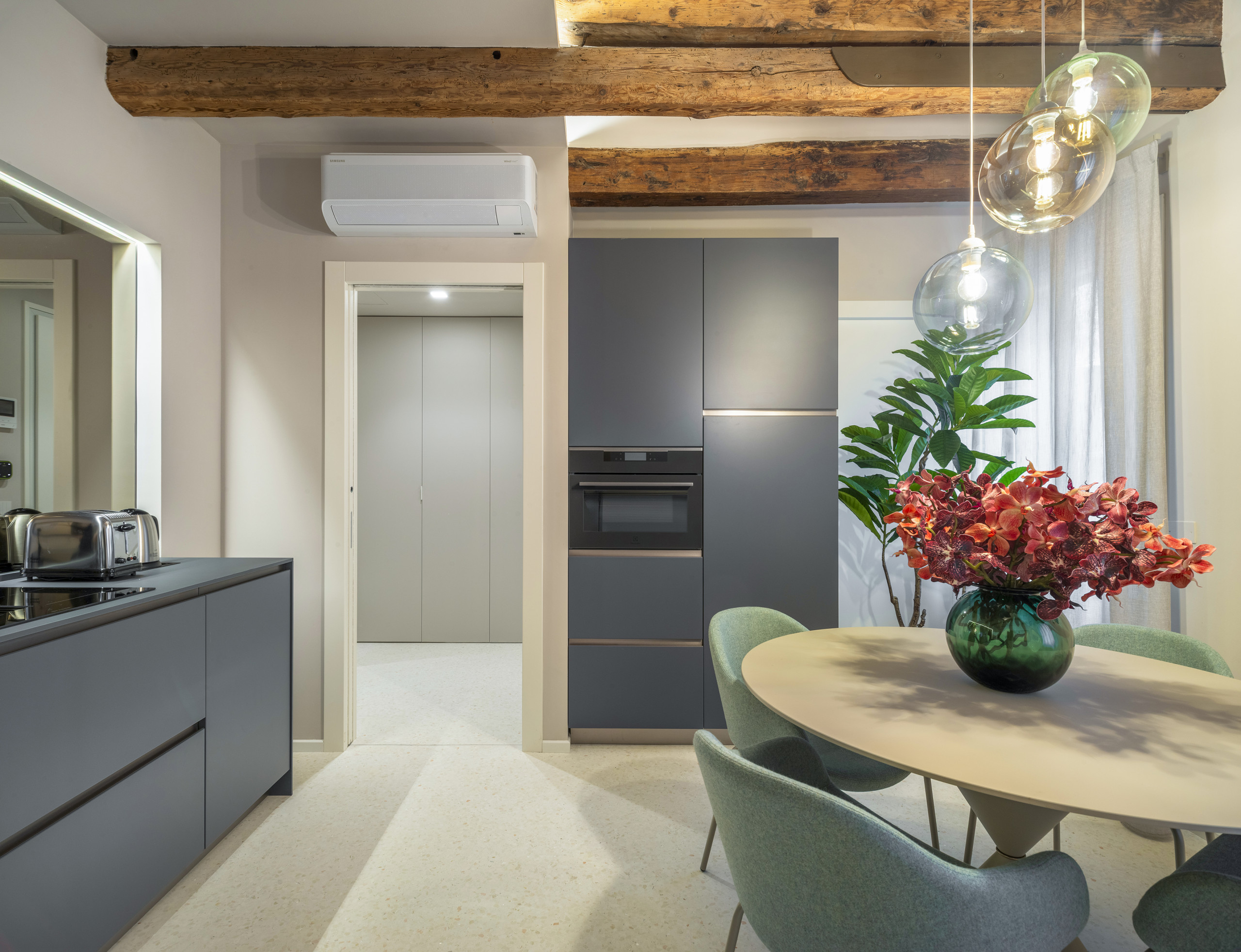 Elegante appartamento appena restaurato, situato a pochi passi da Campo Santa Maria Formosa. Dispone di due camere da letto, entrambe con bagno en suite, arredate con uno stile raffinato ed elegante. Ambienti luminosi e confortevoli, ideali per un soggiorno rilassante nel cuore di Venezia. A disposizione degli ospiti anche una piacevole zona esterna comune.
