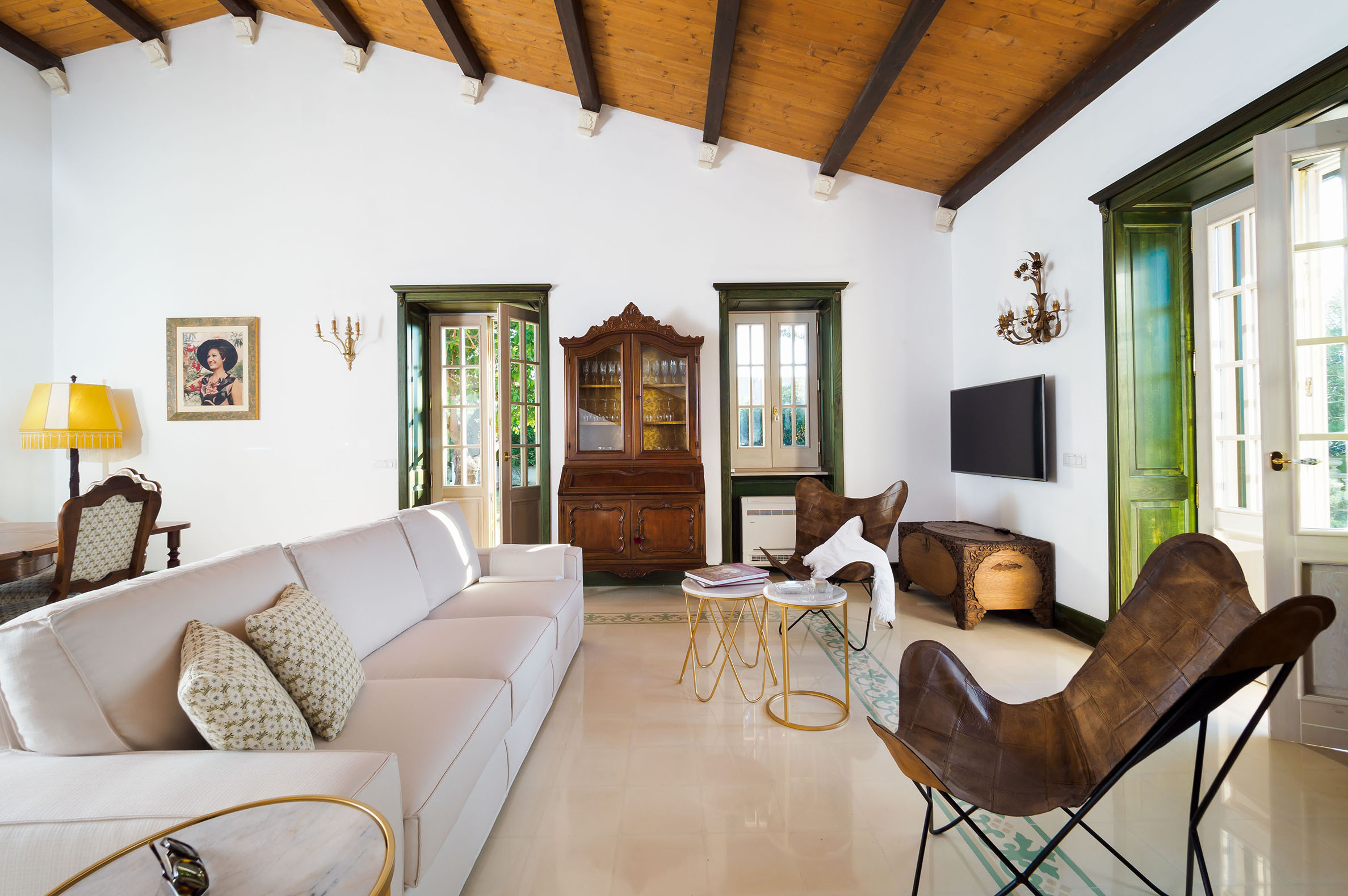 Gira Sole è una bella villa con piscina privata situata a pochi passi dalla splendida spiaggia di sabbia di Fontane Bianche, rinomata località balneare a sud di Siracusa. Ideale per trascorrere rilassanti vacanze all’insegna del sole e del mare, la villa è circondata da un grande e curato giardino che ospita ampie e ben attrezzate terrazze, perfette per vivere all’aria aperta gran parte del giorno e della sera. I confortevoli ambienti interni, arredati con gusto in un piacevole mix di mobili antichi e moderni, comprendono al piano terra uno spazioso soggiorno-pranzo, una ben accessoriata cucina, tre accoglienti camere e due bagni. Dal soggiorno una scenografica scala in legno massello conduce al primo piano che ospita la quarta camera da letto e il terzo bagno. La villa è inoltre dotata di aria condizionata, internet Wi-Fi, 2 TV, lavatrice, lavastoviglie e doccia esterna. La pratica posizione di Gira Sole, oltre ad essere comoda per raggiungere a piedi la spiaggia e il mare, consente di visitare agevolmente le più belle località della Sicilia orientale, come Siracusa, Noto, Modica, Ragusa Ibla, Scicli, la riserva naturale di Vendicari ed i borghi marinari di Portopalo e Marzamemi, ma anche Taormina e il Parco dell’Etna.