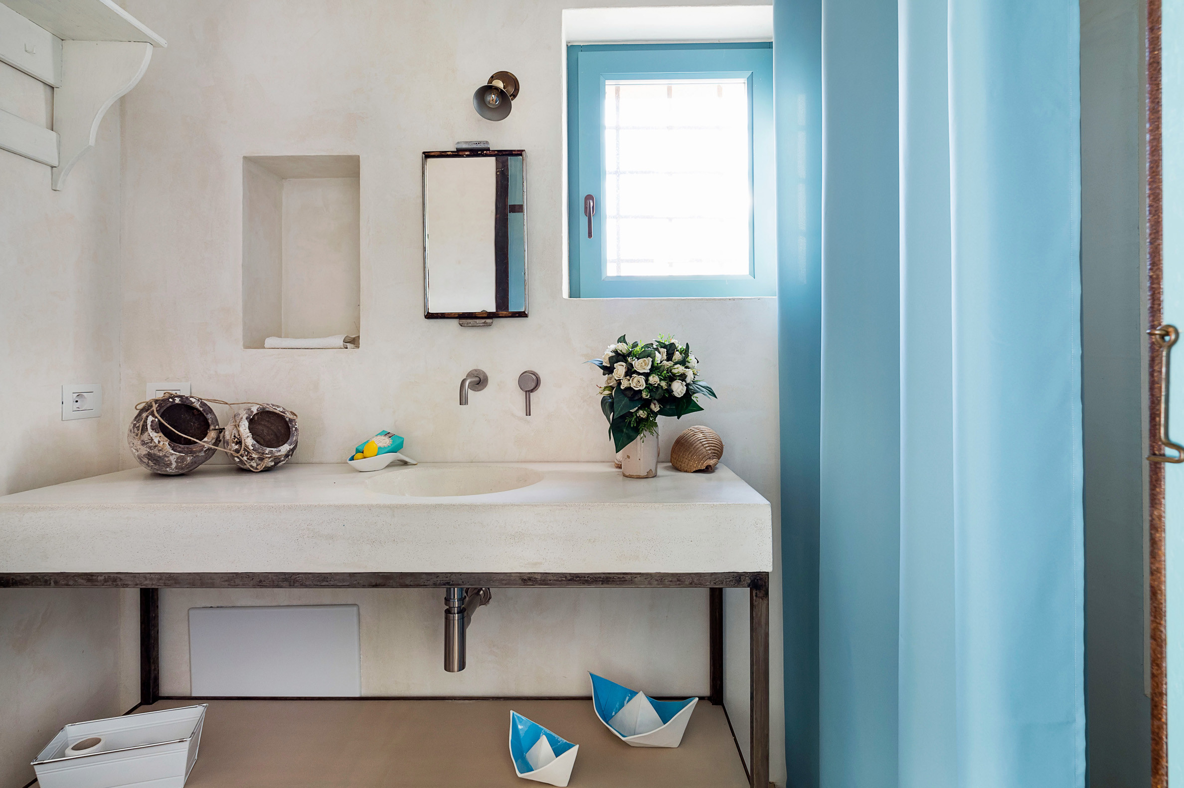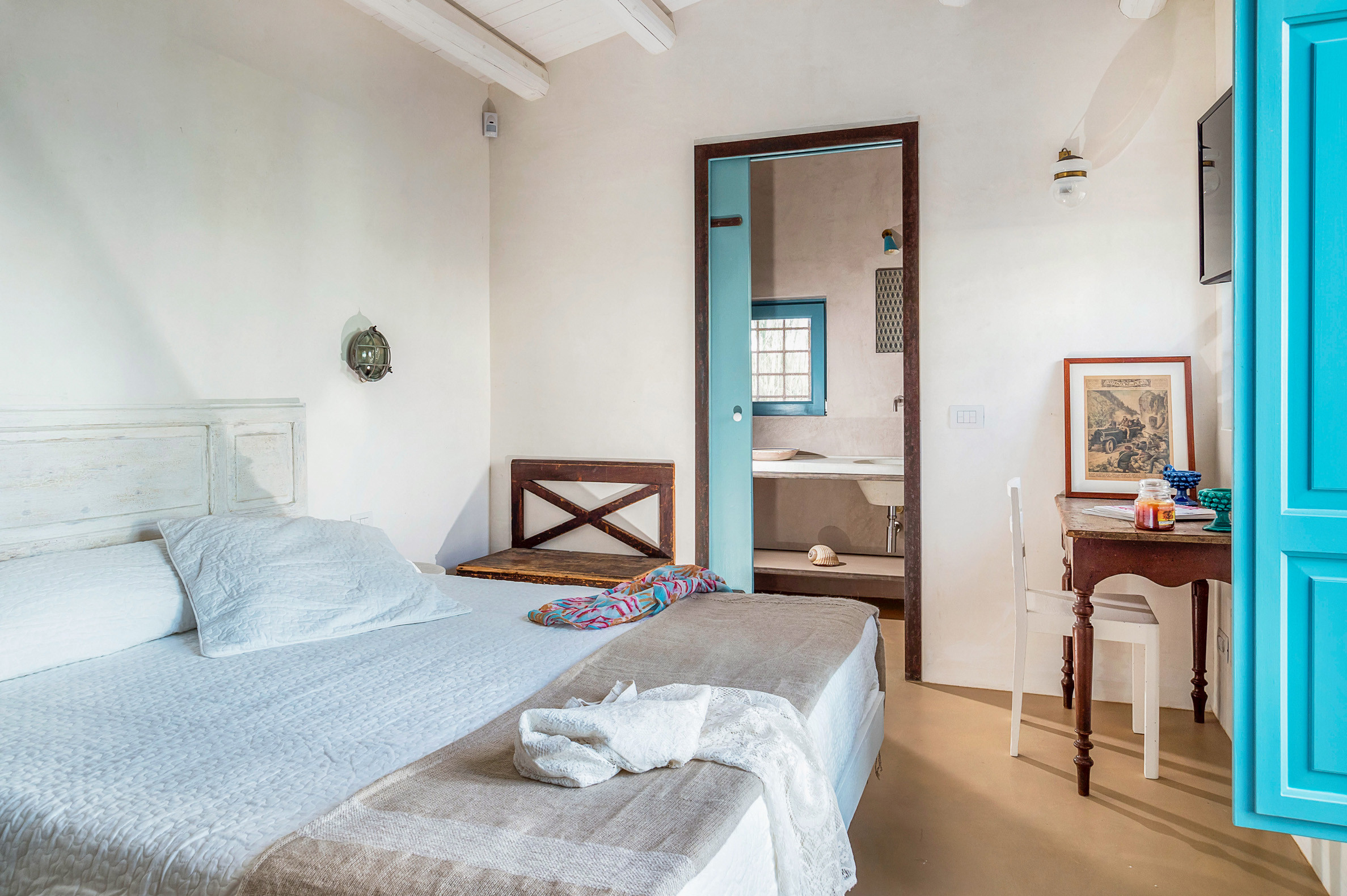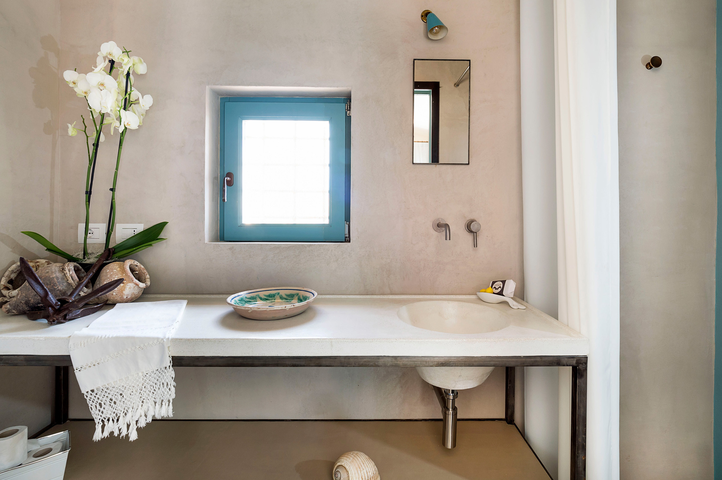 Oggetto di un recente intervento di restyling, affidato ad un rinomato interior designer che ha privilegiato l’impiego di materiali di artigianato locale e un creativo riutilizzo di autentici pezzi d’antiquariato, la casa dispone di accoglienti ambienti interni dotati di tutti i moderni comfort: aria condizionata, internet Wi-Fi, TV satellitare, impianto Hi-Fi, lavatrice, lavastoviglie e barbecue. Un décor minimalista e chic, in stretto rapporto con l'architettura, i colori ed i tratti distintivi dell'isola, in cui si aprono due romantiche camere da letto, una delle quali con accesso dall’esterno, due bagni e un luminoso soggiorno che con grandi vetrate a tutt’altezza si affaccia sulla terrazza, regalando agli ospiti un contatto unico ed esclusivo con il mare.