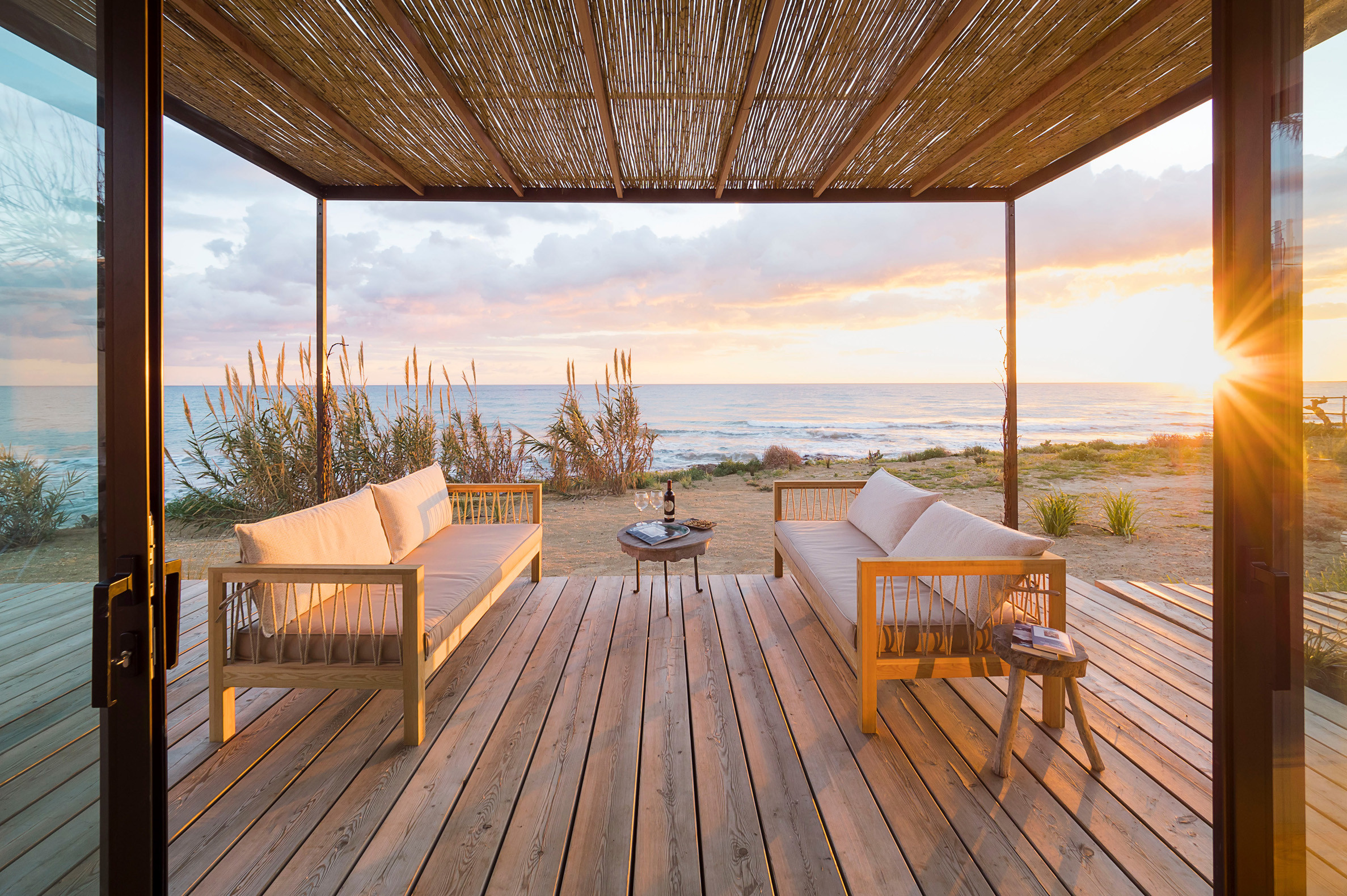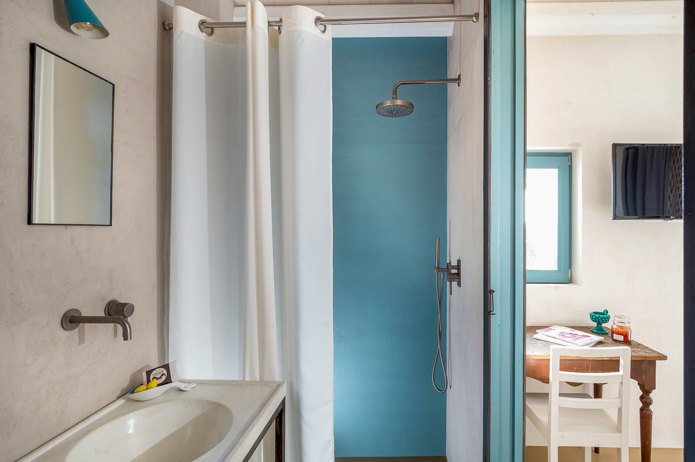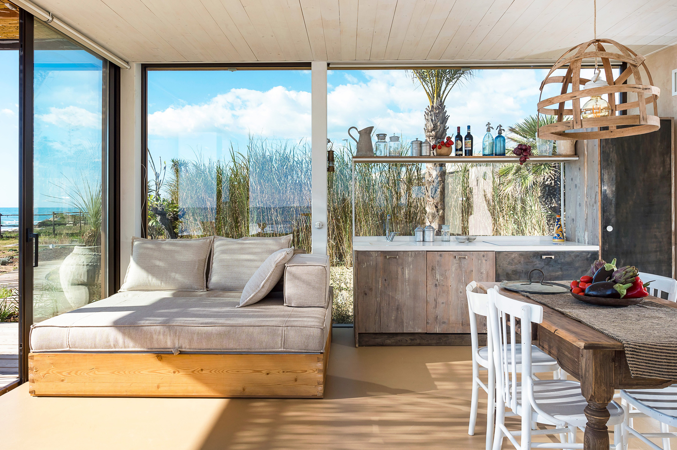 Oggetto di un recente intervento di restyling, affidato ad un rinomato interior designer che ha privilegiato l’impiego di materiali di artigianato locale e un creativo riutilizzo di autentici pezzi d’antiquariato, la casa dispone di accoglienti ambienti interni dotati di tutti i moderni comfort: aria condizionata, internet Wi-Fi, TV satellitare, impianto Hi-Fi, lavatrice, lavastoviglie e barbecue. Un décor minimalista e chic, in stretto rapporto con l'architettura, i colori ed i tratti distintivi dell'isola, in cui si aprono due romantiche camere da letto, una delle quali con accesso dall’esterno, due bagni e un luminoso soggiorno che con grandi vetrate a tutt’altezza si affaccia sulla terrazza, regalando agli ospiti un contatto unico ed esclusivo con il mare.