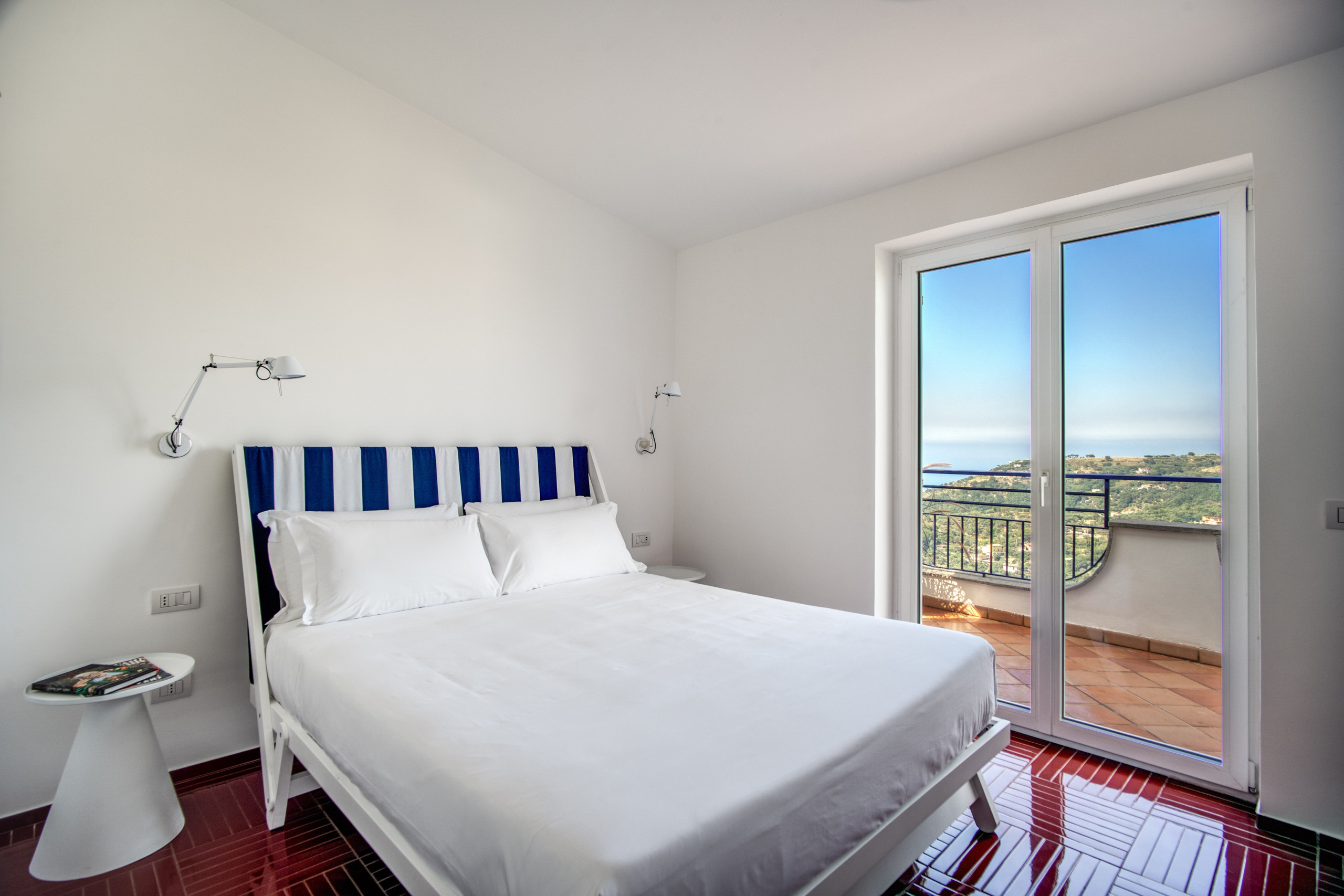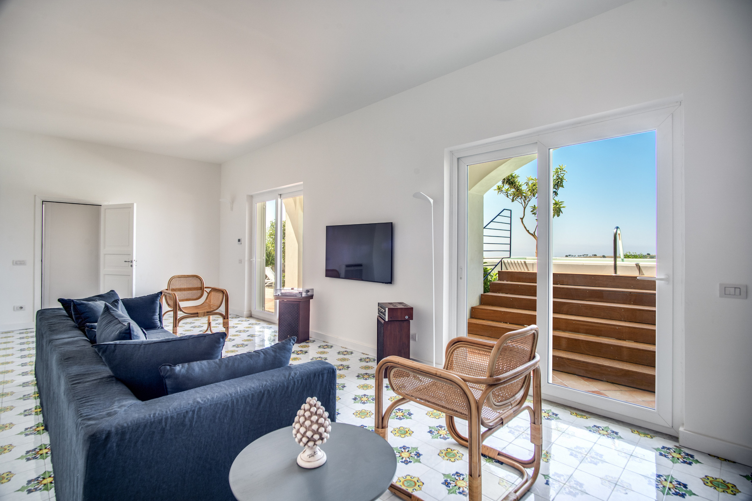 Villa La Luce enjoys a privileged location for ultimate privacy. It is designed over two floors to the highest standards, with bright modern interiors that include five en-suite double bedrooms with spacious bathrooms with walk-in rain showers, a sophisticated living room, dining area and a separate modern kitchen. The bedrooms on the first floor have private balconies with lounging furniture and panoramic views on the Mediterranean Sea and the natural landscapes. The interiors open out onto a spacious patio featuring lounging furniture, a dining table, a private pool surrounded by Mediterranean gardens and breathtaking views.