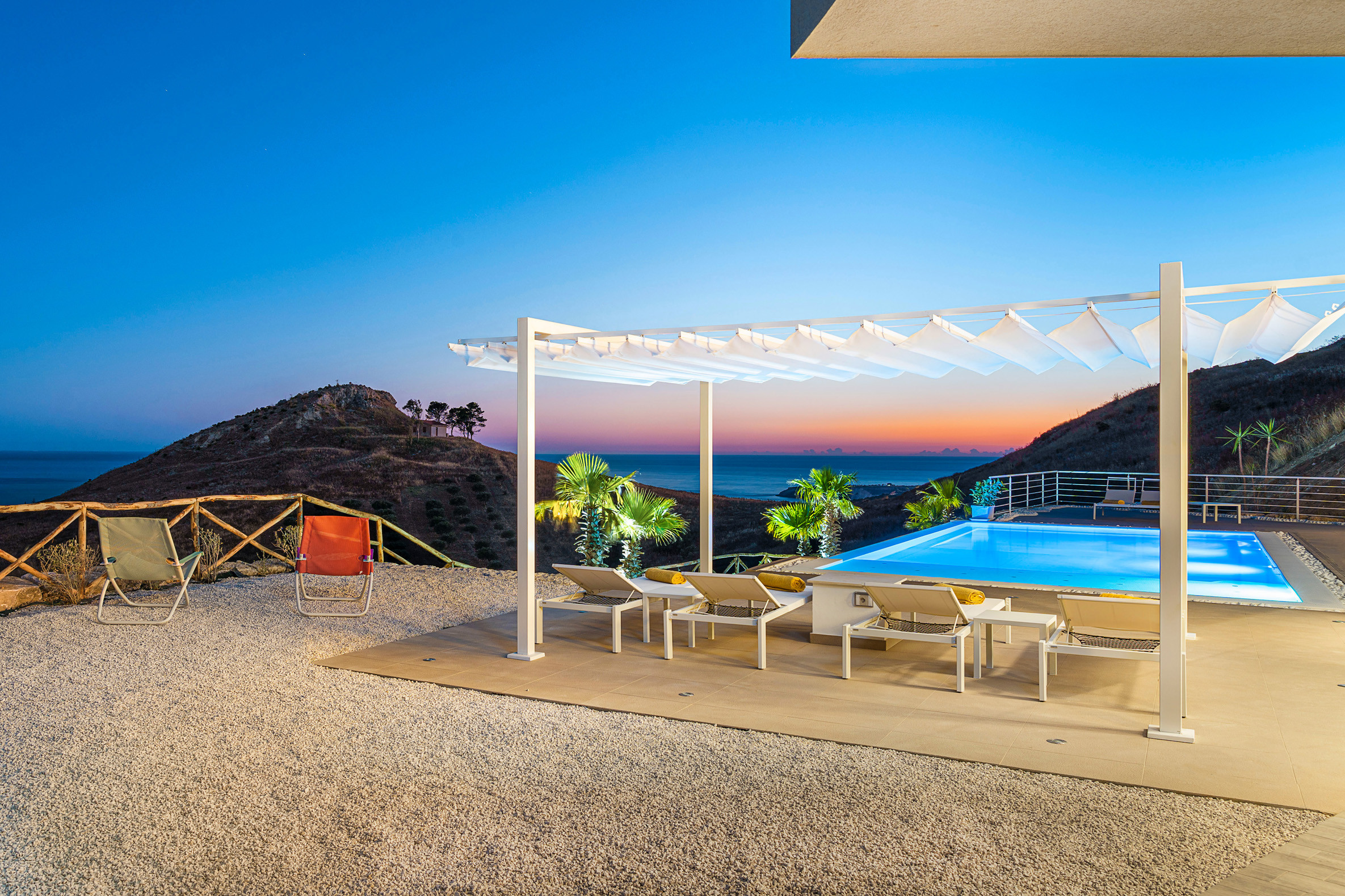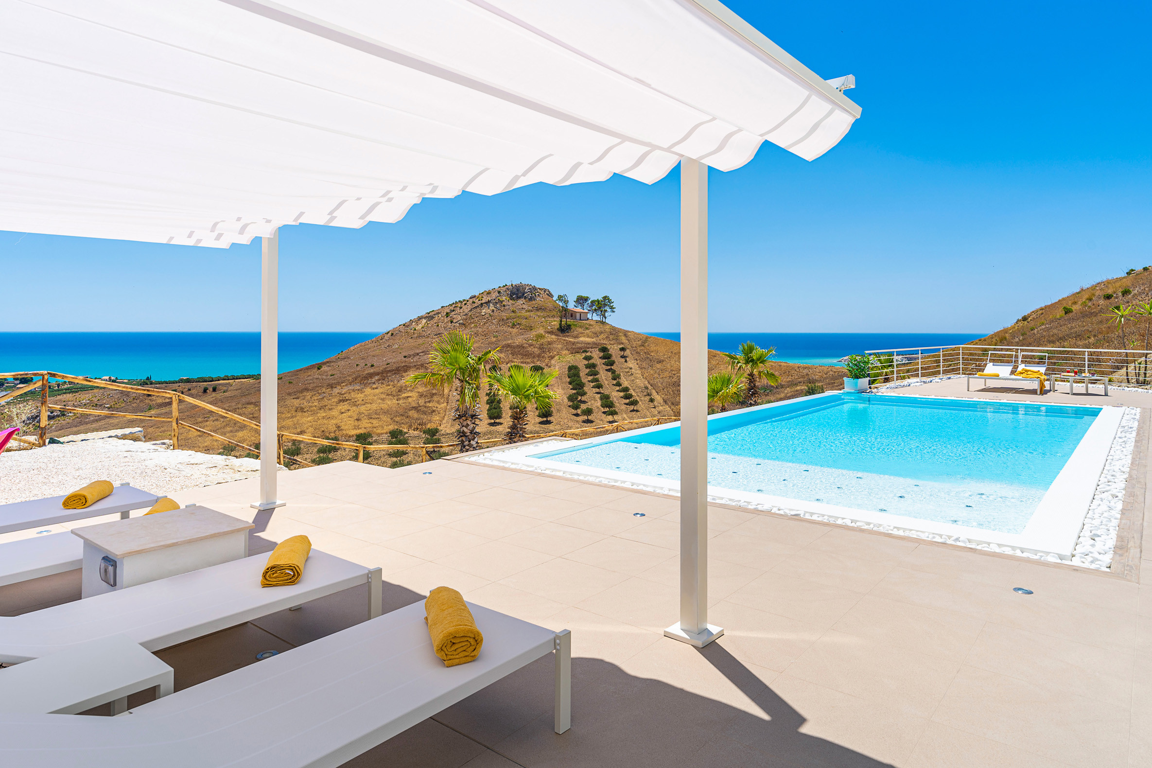 Villa Domizia è una splendida villa con piscina situata tra Eraclea Minoa e la riserva naturale di Torre Salsa, 35 km a nord di Agrigento. Di recente costruzione, la villa si affaccia sull’esclusiva piscina con idromassaggio e sulle sue ampie terrazze panoramiche, che offrono un’incantevole vista sul tranquillo paesaggio circostante e sul mare, da cui dista appena tre chilometri. Distribuiti su due livelli, collegati tramite una scala esterna, i confortevoli e luminosi ambienti interni della dimora comprendono al piano terra una zona living con camino, cucina e sala da pranzo, due camere da letto e un bagno, mentre al primo piano si trovano due camere da letto con bagno privato, una zona giorno con angolo cottura ed una bella terrazza solarium. La villa dispone inoltre di internet Wi-Fi, 2 TV, ricevitore satellitare, 2 lavastoviglie, lavatrice e barbecue. Villa Domizia è anche un ottimo punto di partenza per esplorare le più belle località della Sicilia meridionale. Posta al centro di un territorio di elevato valore culturale e paesaggistico, la villa si trova tra le riserve naturali di Torre Salsa e della Foce del Fiume Platani, tra le spiagge di sabbia di Bovo Marina ed Eraclea Minoa, ma al tempo stesso anche a breve distanza dalle scogliere della Scala dei Turchi, dalla Valle dei Templi di Agrigento, da Sciacca e Selinunte.