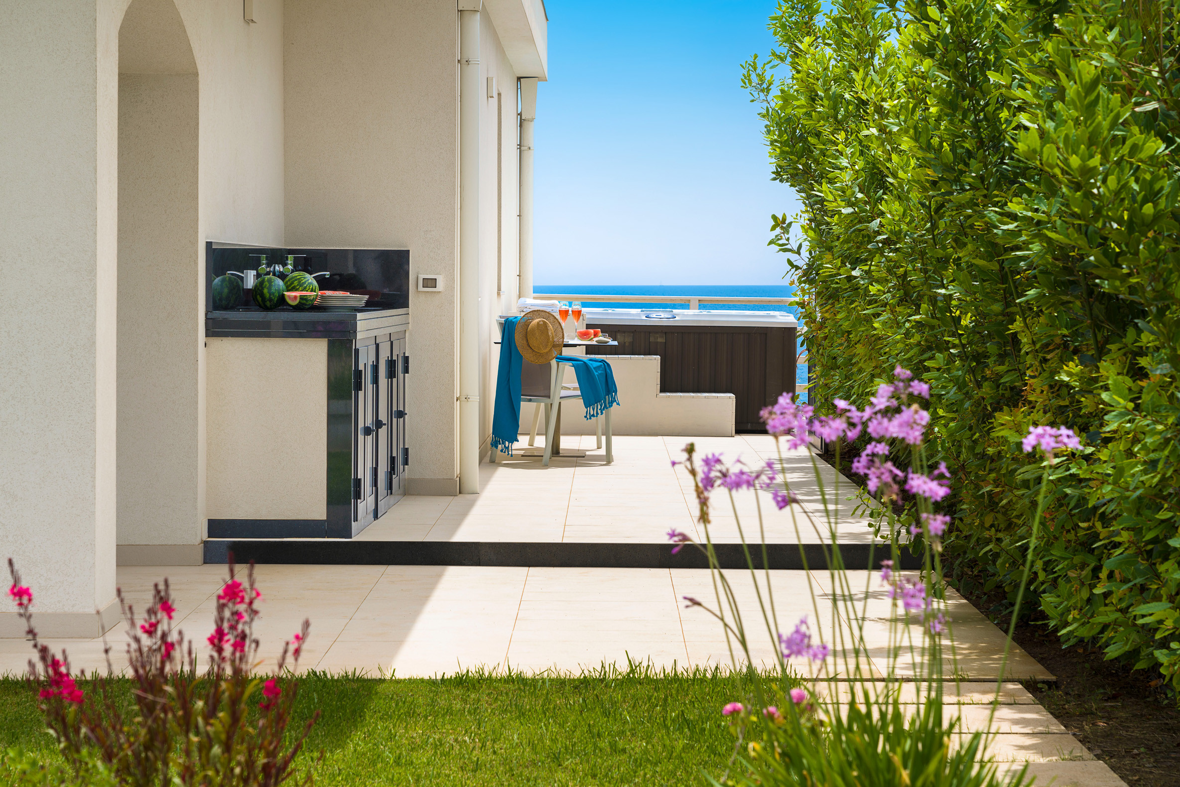 Veranda con barbecue e dining area, terrazza, giardino, vasca idromassaggio, solarium.