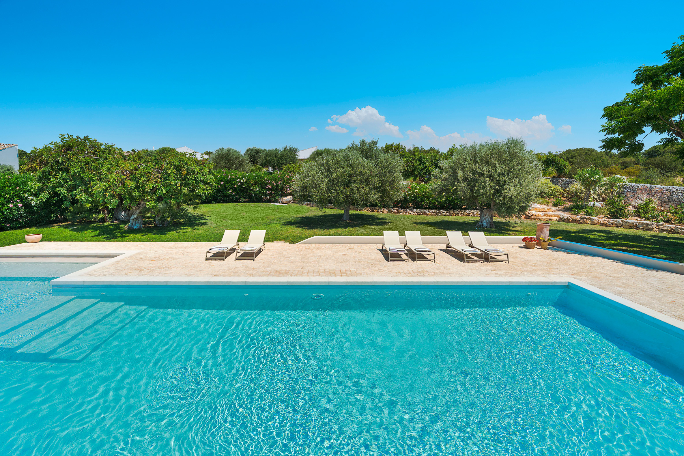 Isla Verde è un esclusivo complesso di tre ville con piscina situato nei dintorni di Sampieri, caratteristico borgo marinaro della Sicilia sud-orientale rinomato per la sua lunga spiaggia di fine sabbia dorata. Immerse nel verde, ma a pochi minuti dal mare, le ville dispongono - oltre che del parco e della grande piscina in comune - di ampia terrazza attrezzata e di giardino privati che consentono di vivere una vacanza rilassante tra i colori e i profumi della campagna siciliana. Disposte su un unico livello, le villette si caratterizzano per la cura dei dettagli e l’arredo ricercato e sono composte da un accogliente soggiorno-pranzo con cucina, due camere da letto matrimoniali, una doppia e due bagni. Totalmente indipendenti l’una dall’altra, sono tutte dotate di wi-fi, ventilatori a soffitto, riscaldamento centralizzato, lavatrice e lavastoviglie. La proprietà vanta inoltre una posizione privilegiata: a breve distanza si trovano le cittadine barocche di Scicli, Modica, Ragusa Ibla e Noto, le spiagge di Marina di Ragusa e la riserva di Vendicari.