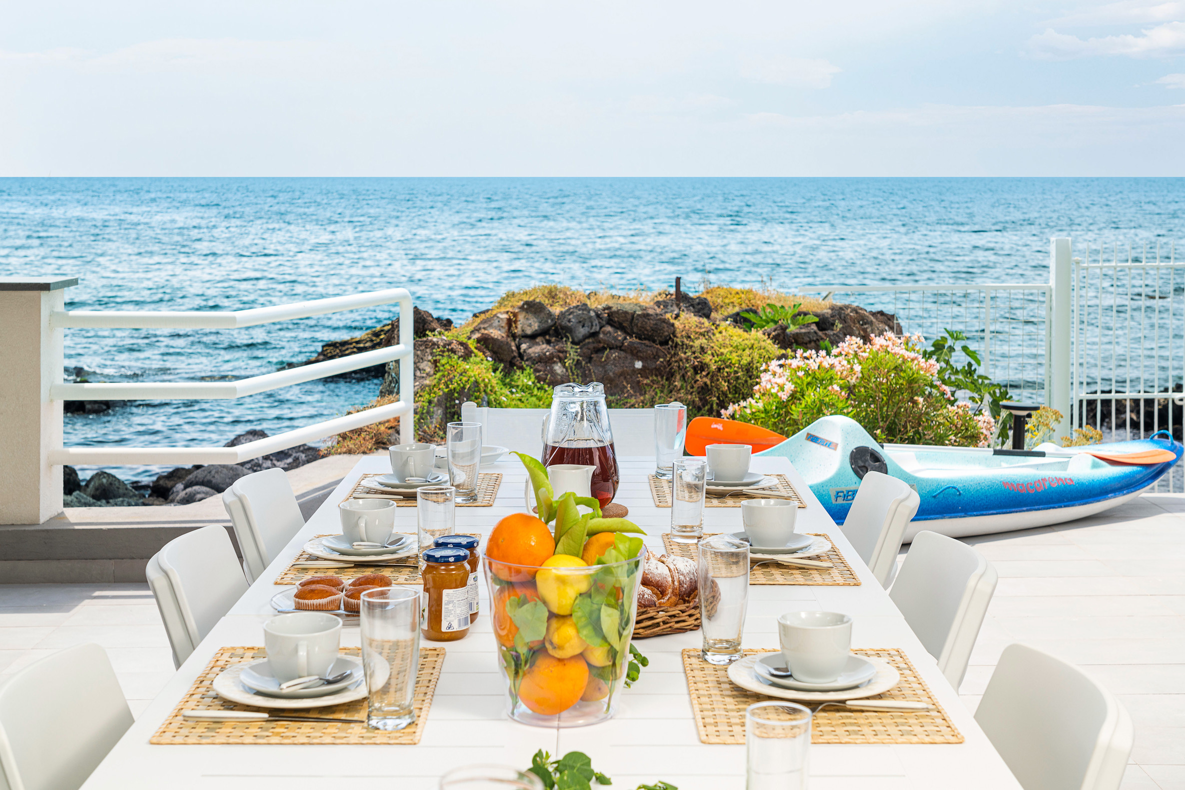 Villa Isabella è una lussuosa villa sul mare con piscina privata posta ai margini del caratteristico borgo marinaro di Stazzo, tra Catania e Taormina. La residenza, circondata da ampie terrazze e da un curato giardino che ospita l’esclusiva piscina (mt 6 x 20), si affaccia sulla scogliera di pietra lavica e sul mare, a cui ha accesso diretto. Raffinata ed elegante, questa prestigiosa residenza si sviluppa su due livelli. Tramite una scenografica scala esterna si accede al primo piano: qui uno spazioso ingresso introduce ad un accogliente e luminoso living con salotto, sala da pranzo e cucina ed a cinque confortevoli camere da letto con bagno privato. Mentre al piano terra, anche questo accessibile dall’esterno, si trovano un secondo salotto con zona pranzo e cucina, tre ulteriori camere con bagno privato ed una stanza dei giochi (ping-pong, calcio balilla e sacco da boxe). Arredata con gusto e cura dei particolari, la villa dispone di tutti i moderni comfort, quali aria condizionata, wi-fi, 4 smart TV, 2 lavatrici e 2 lavastoviglie. Villa Isabella è la dimora ideale dove trascorrere un piacevole e rilassante soggiorno al mare, ma anche un’ottima base per partire alla scoperta del sorprendente territorio circostante. In pochi chilometri si raggiungono il Parco dell’Etna, Acireale, Catania, Taormina e Siracusa. Da non perdere un suggestivo giro in barca alla scoperta dell’isola Lachea e dei faraglioni di Aci Trezza e Aci Castello.
