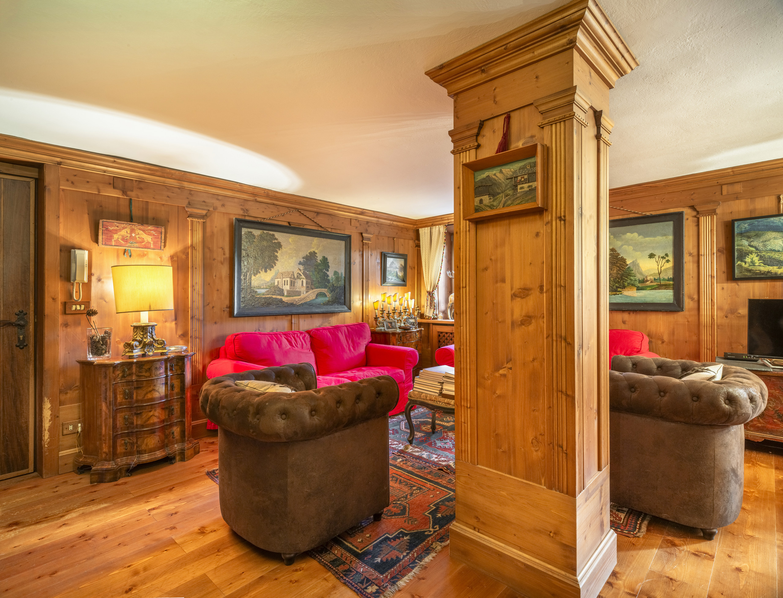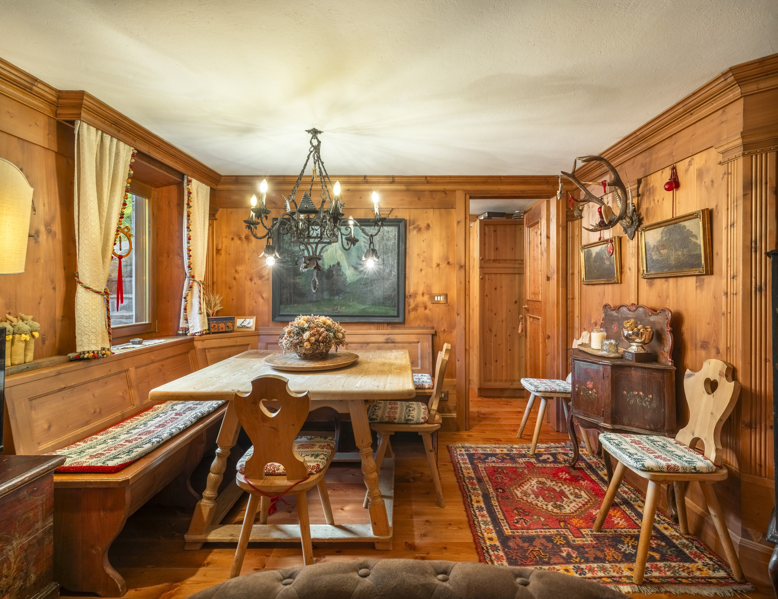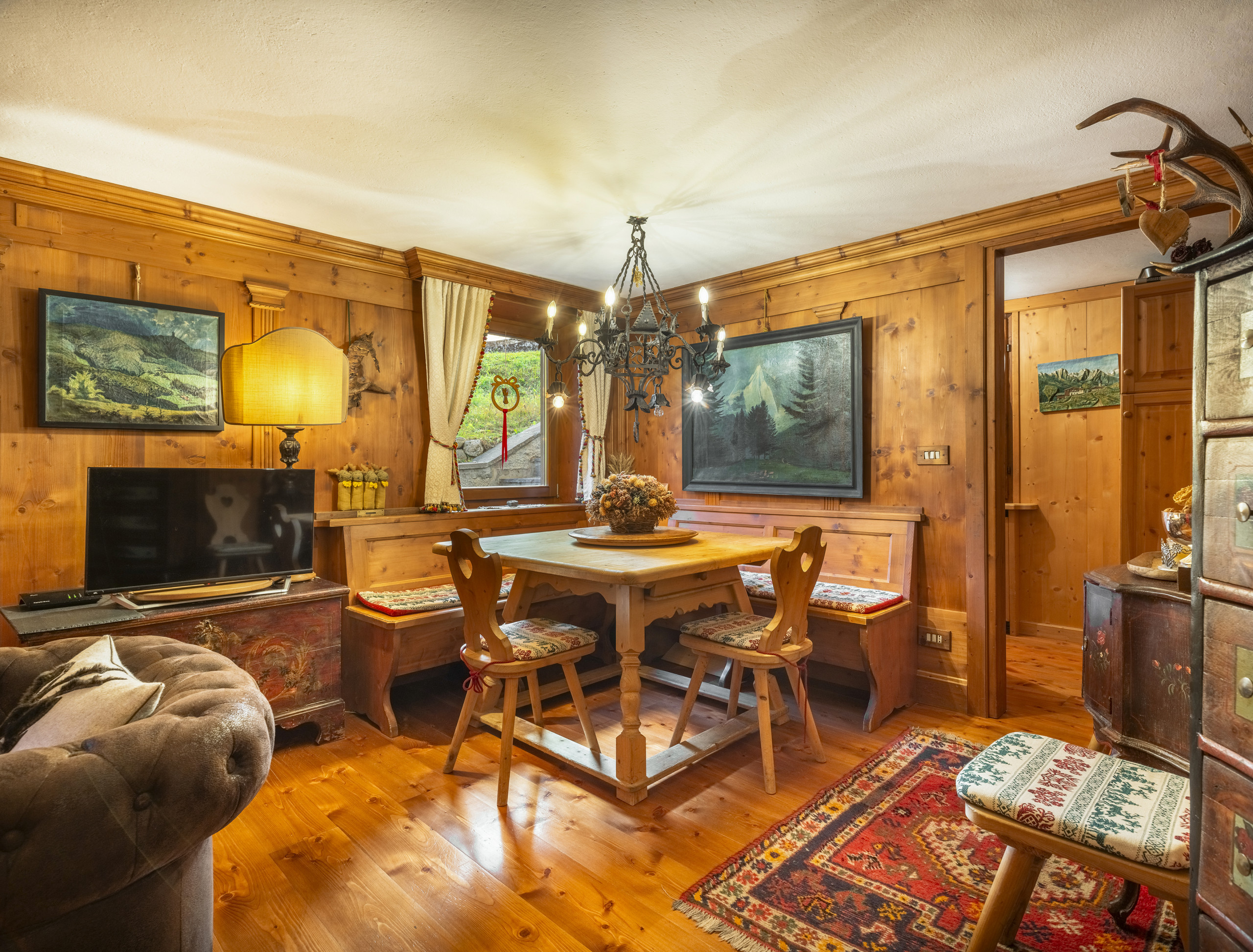 Immersed in the greenery and tranquillity of the Salieto location, just a few minutes from the centre of Cortina d'Ampezzo, this welcoming ground floor apartment in authentic Ampezzo style offers a warm and inviting atmosphere, perfect for those who wish to experience the mountains in total relaxation. The accommodation consists of a double bedroom, two single-bed rooms, a bathroom and a spacious living room with a dining table and equipped kitchen, and is equipped with a reserved outdoor parking space. The interiors, carefully detailed, recall the local tradition with natural materials and typical furnishings that create an elegant and comfortable environment. The location, immersed in nature, offers an extraordinary view of the Dolomites and the peace of a reserved context, while remaining convenient to the main services and attractions of Cortina. An ideal solution for families or groups of friends who wish to spend an authentic holiday amidst nature, comfort and tradition.