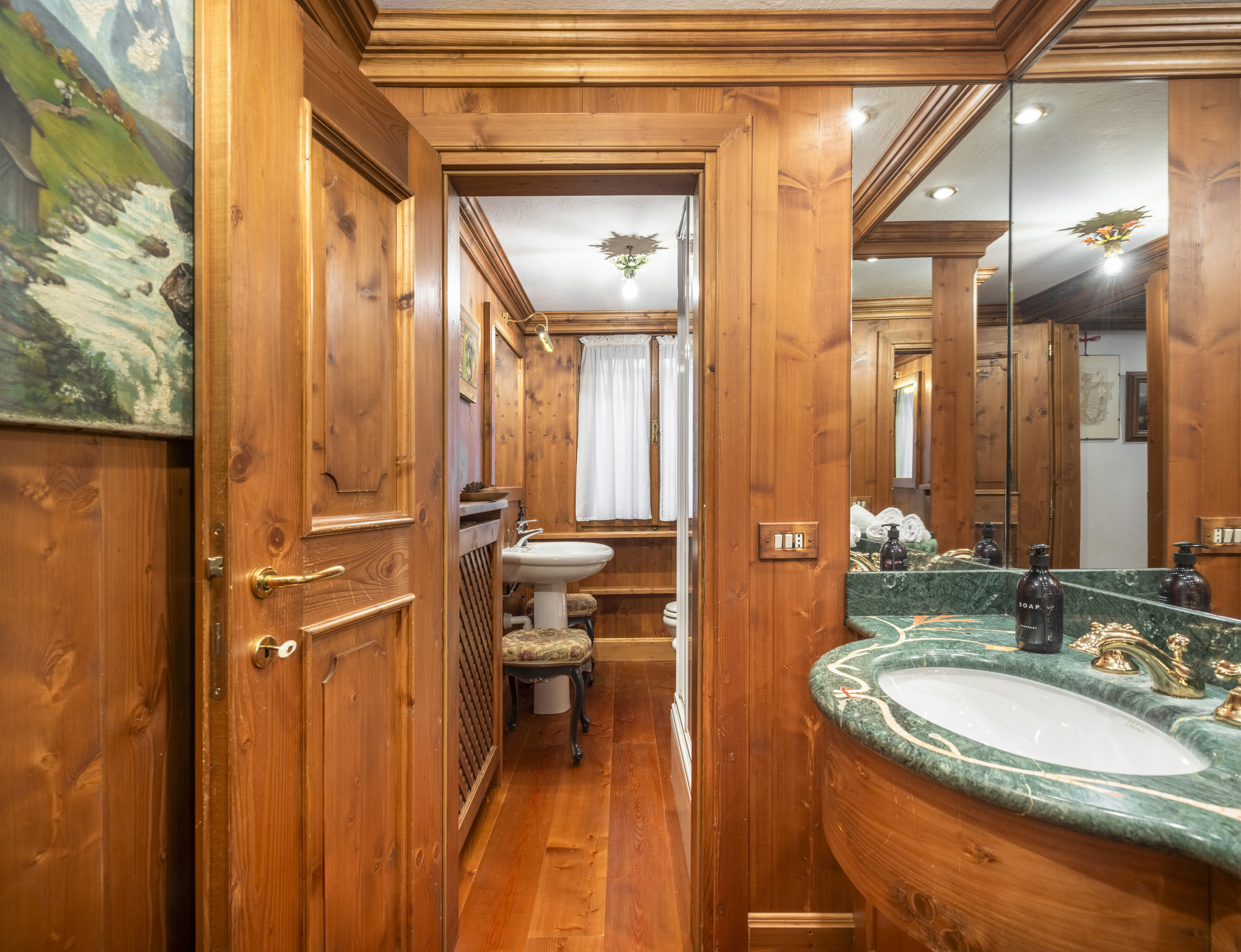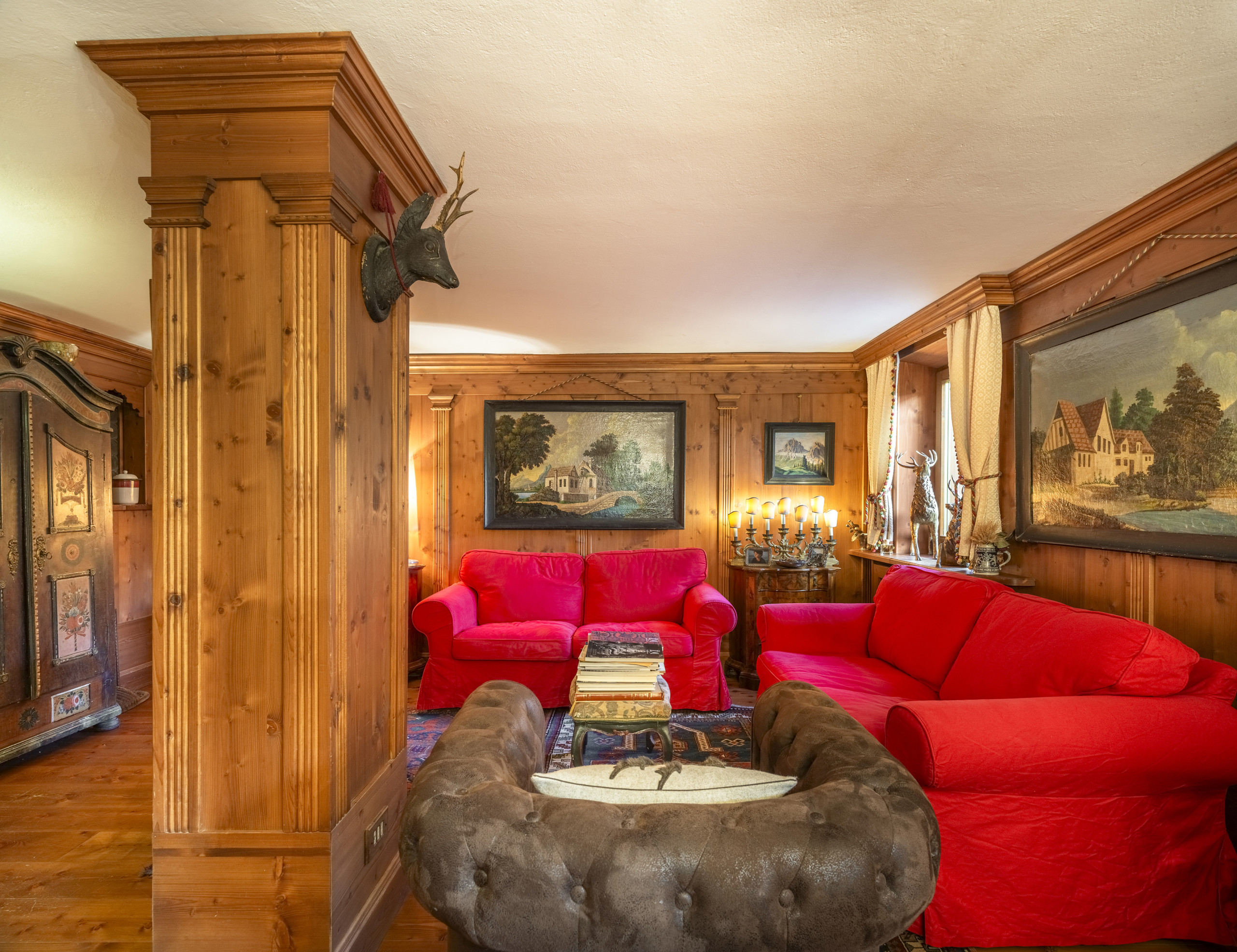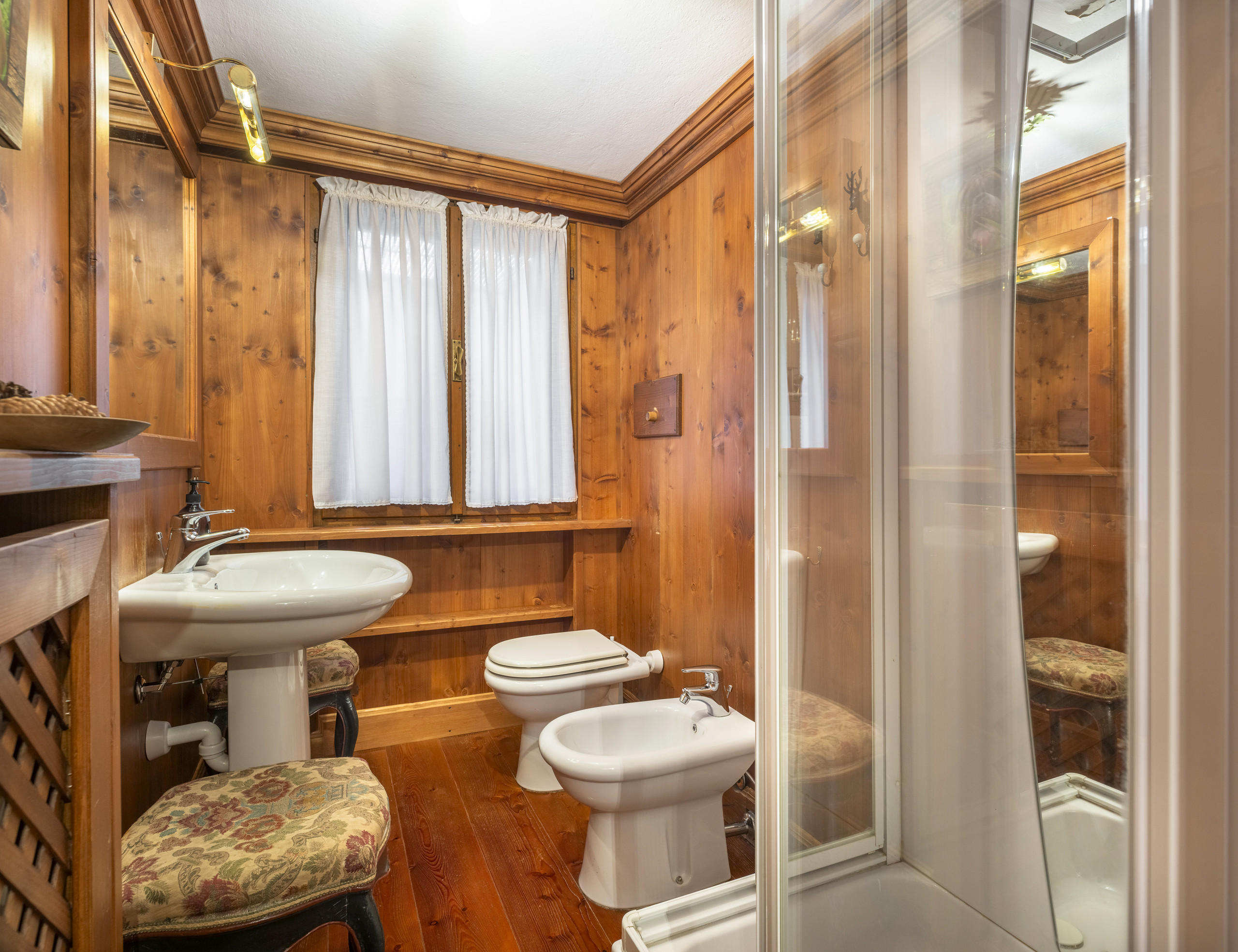 Immersed in the greenery and tranquillity of the Salieto location, just a few minutes from the centre of Cortina d'Ampezzo, this welcoming ground floor apartment in authentic Ampezzo style offers a warm and inviting atmosphere, perfect for those who wish to experience the mountains in total relaxation. The accommodation consists of a double bedroom, two single-bed rooms, a bathroom and a spacious living room with a dining table and equipped kitchen, and is equipped with a reserved outdoor parking space. The interiors, carefully detailed, recall the local tradition with natural materials and typical furnishings that create an elegant and comfortable environment. The location, immersed in nature, offers an extraordinary view of the Dolomites and the peace of a reserved context, while remaining convenient to the main services and attractions of Cortina. An ideal solution for families or groups of friends who wish to spend an authentic holiday amidst nature, comfort and tradition.