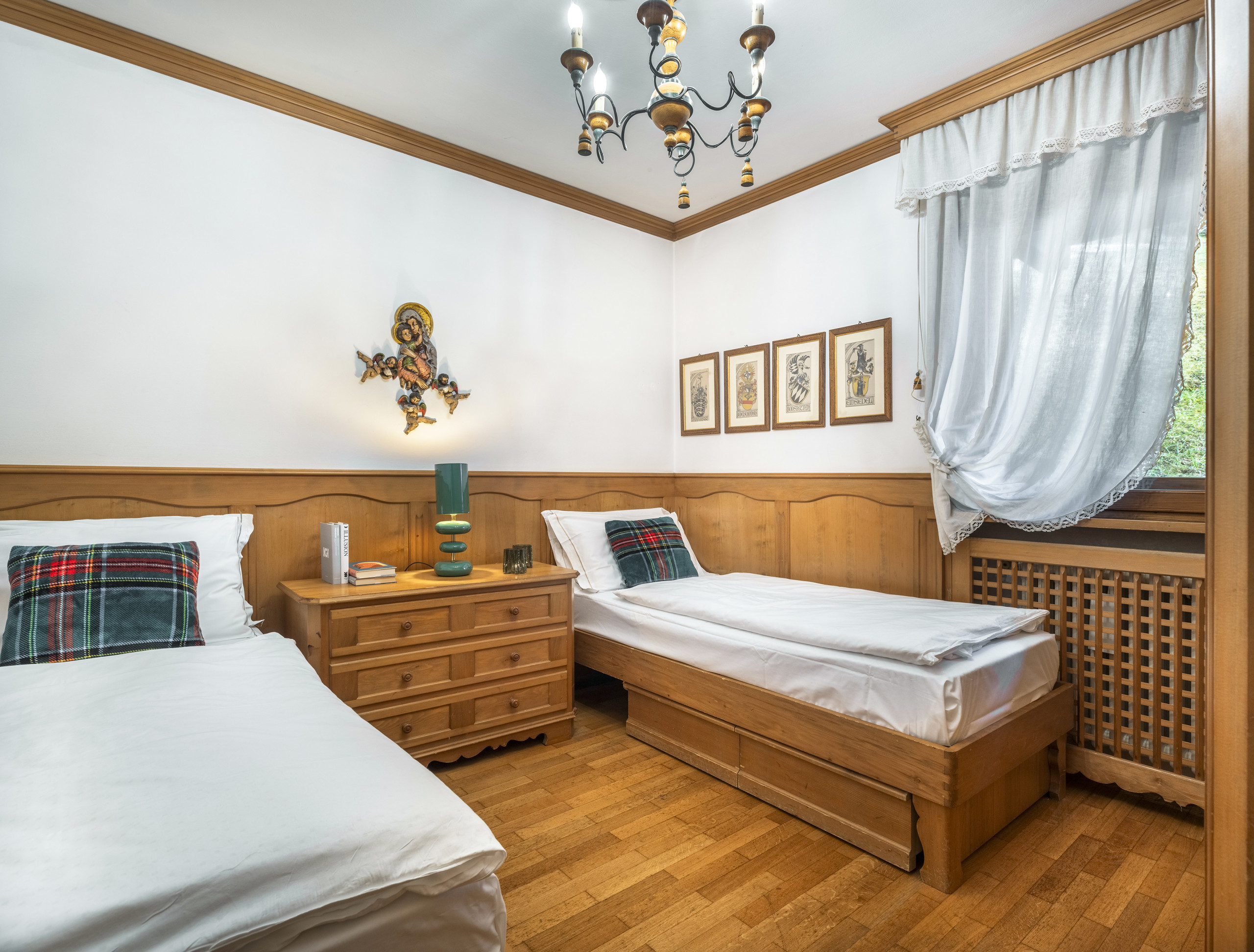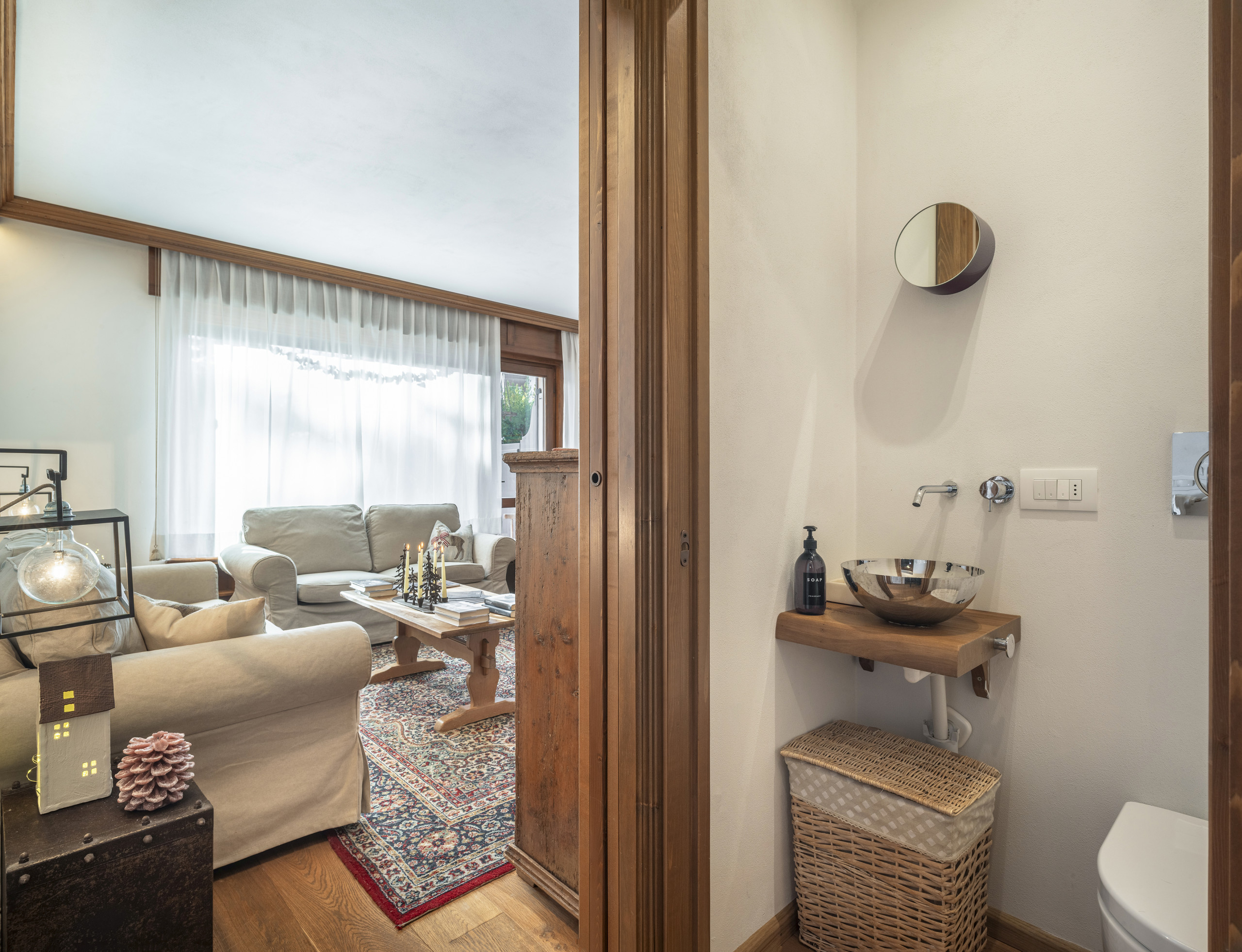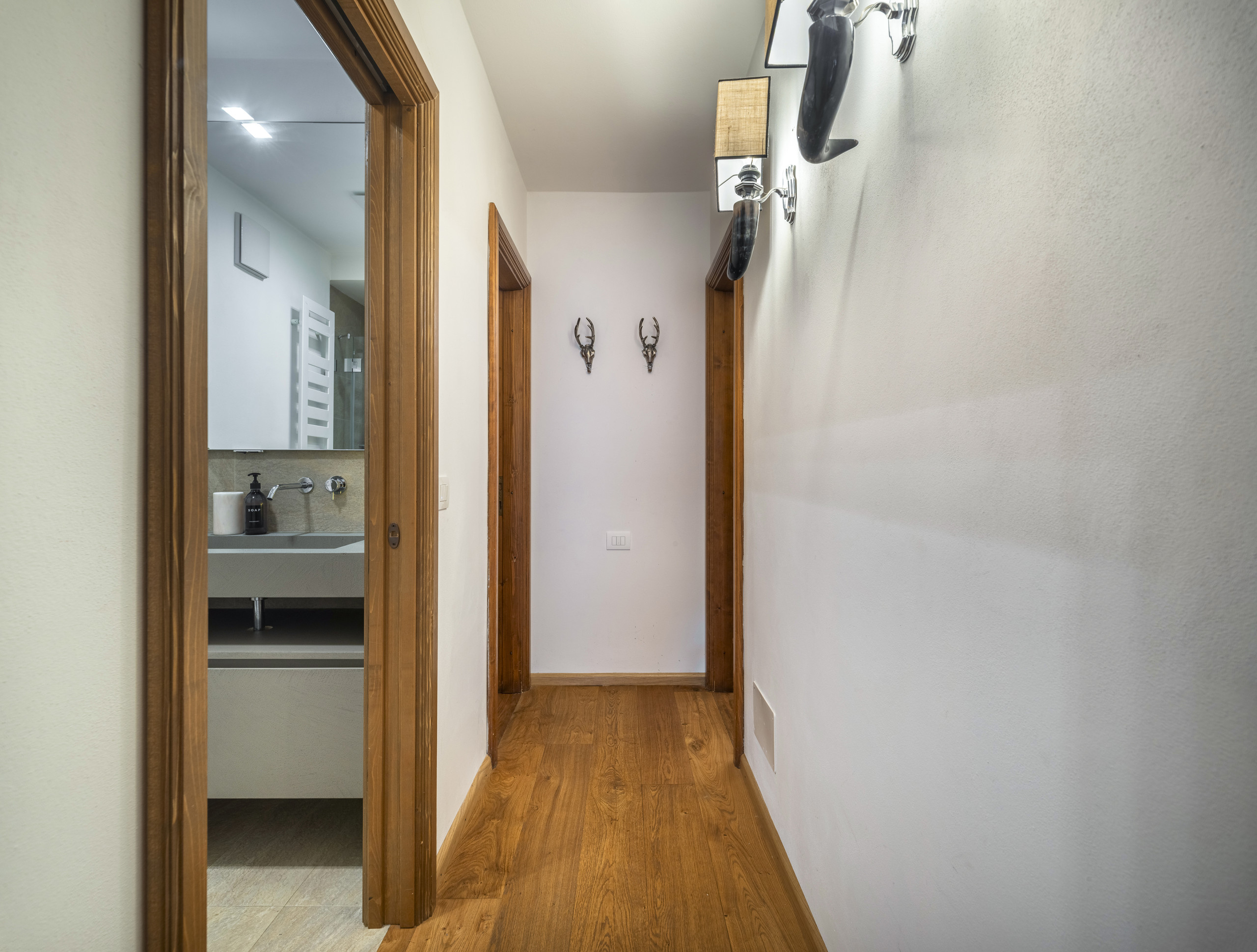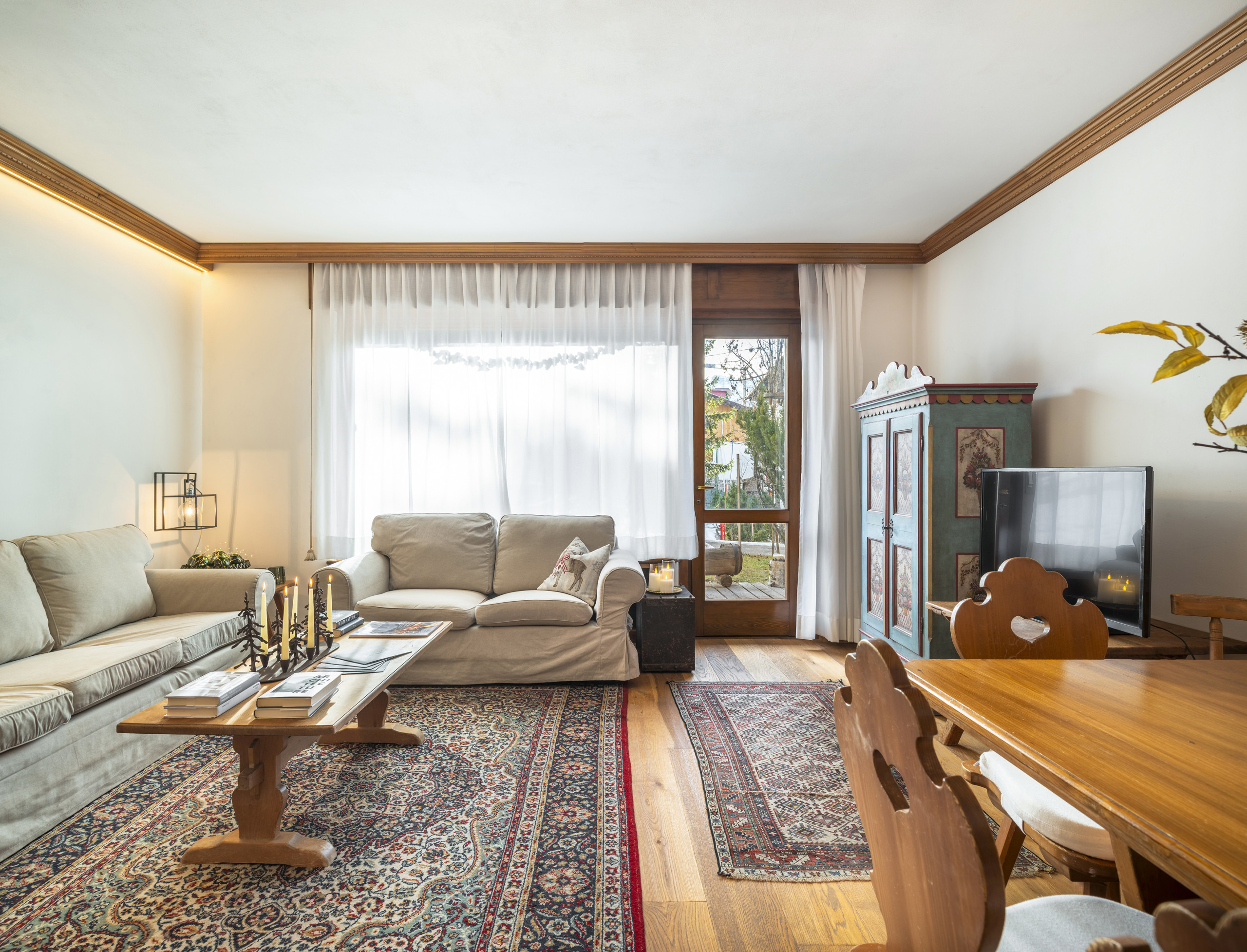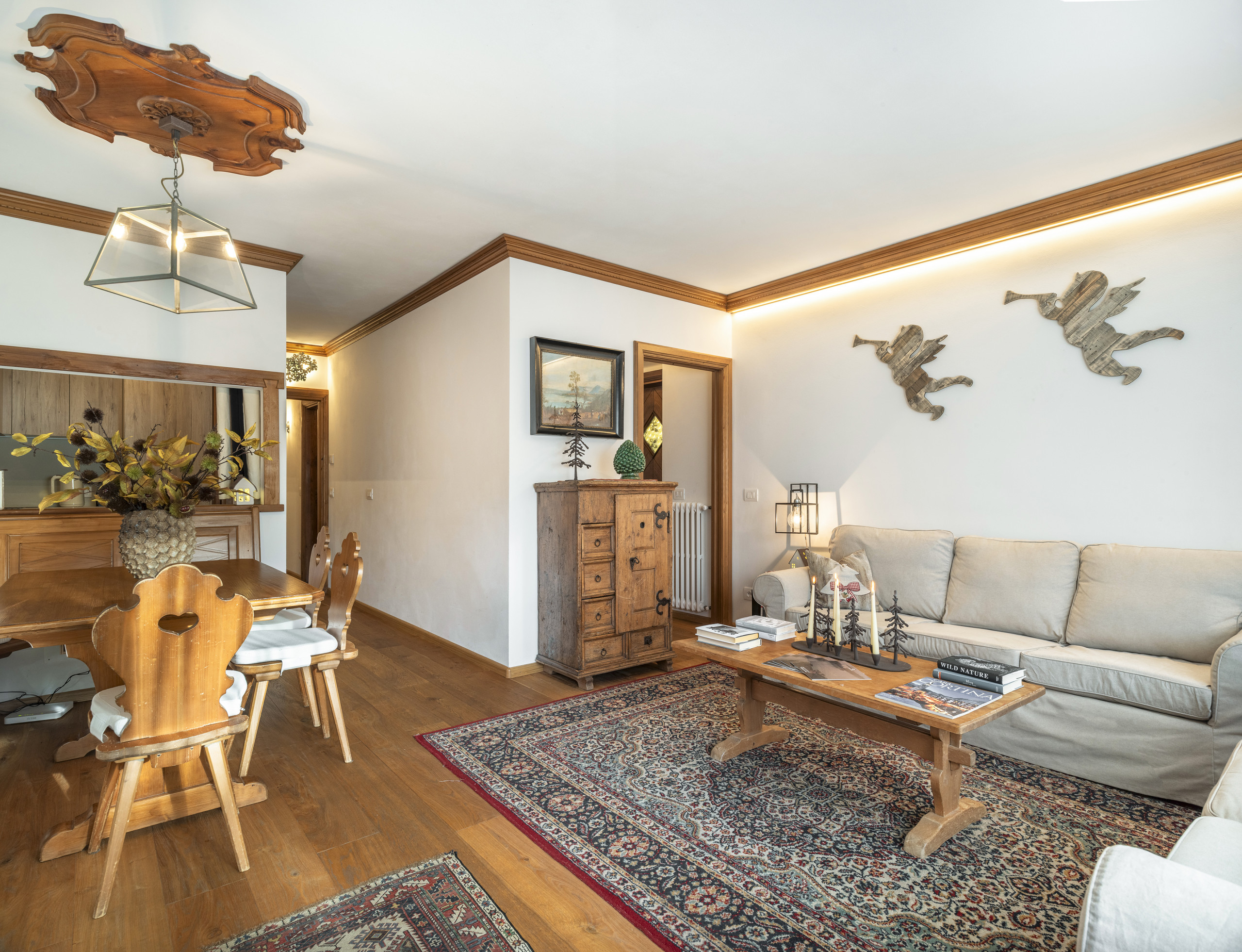 In Cortina d'Ampezzo, in the quiet and scenic area of Cianderies, we offer a splendid tourist solution on the ground floor. The apartment, perfect for families or groups of friends, consists of three comfortable bedrooms, two shower bathrooms, and a service bathroom. The kitchen is fully equipped and adjacent to the dining room, creating an ideal environment for convivial moments of relaxation. The living room is welcoming, with two spacious sofas perfect for enjoying an evening in company, perhaps after a day of excursions in the surrounding nature. Outside, a small corner of paradise awaits guests: an area with two chairs, ideal for enjoying the panorama of the meadows surrounding the house. The location is ideal for those seeking tranquillity without giving up proximity to Cortina's attractions.