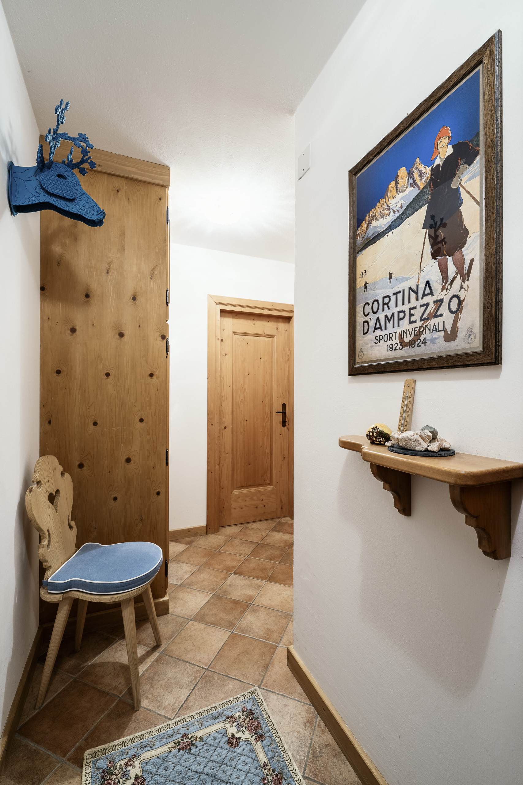 Outside, a convenient private parking is available, ideal for those who want to move independently and enjoy the natural wonders and ski slopes of the area. The location, immersed in nature but close to main services and ski lifts, makes this apartment the perfect base for exploring Cortina in every season.