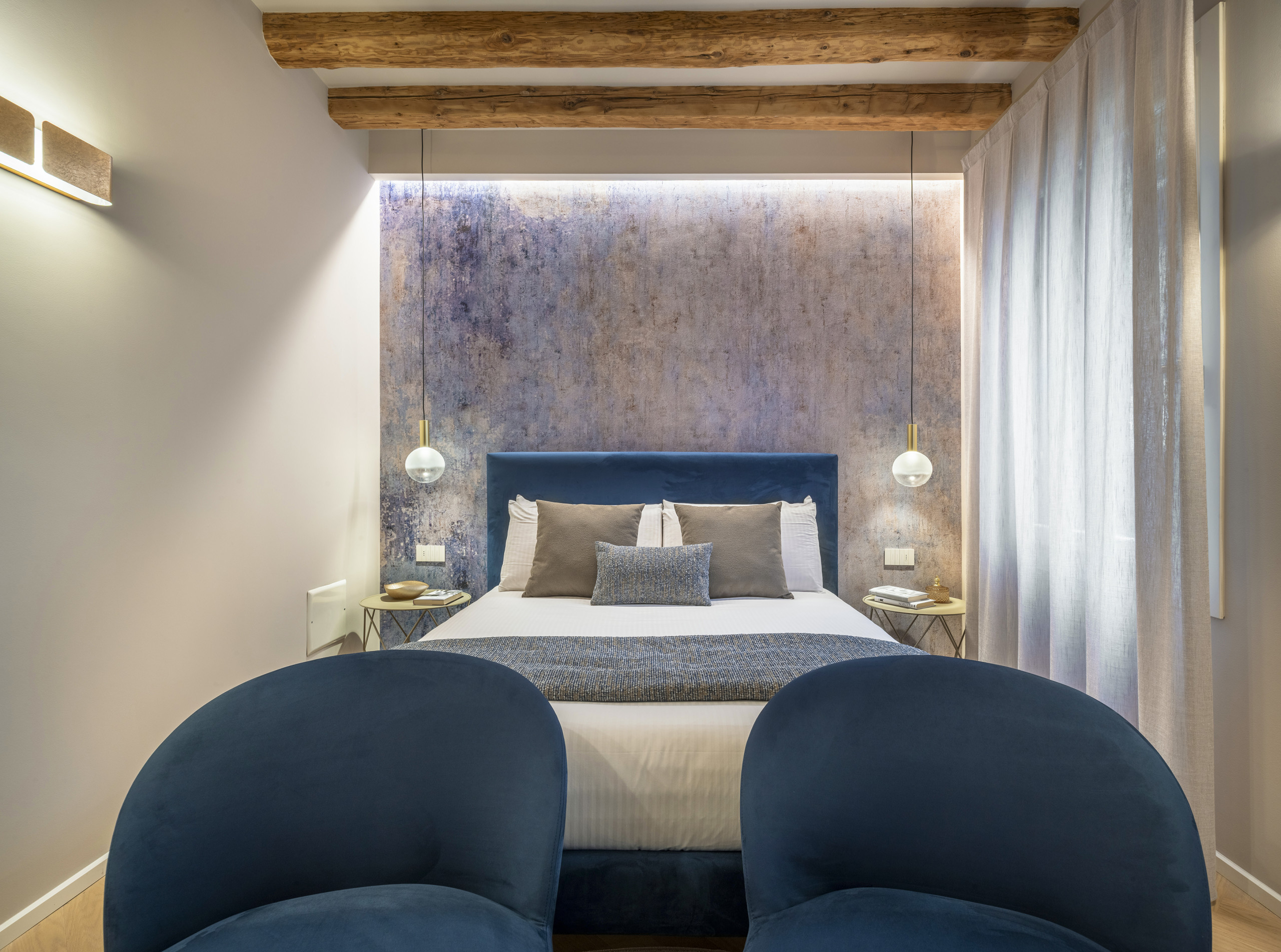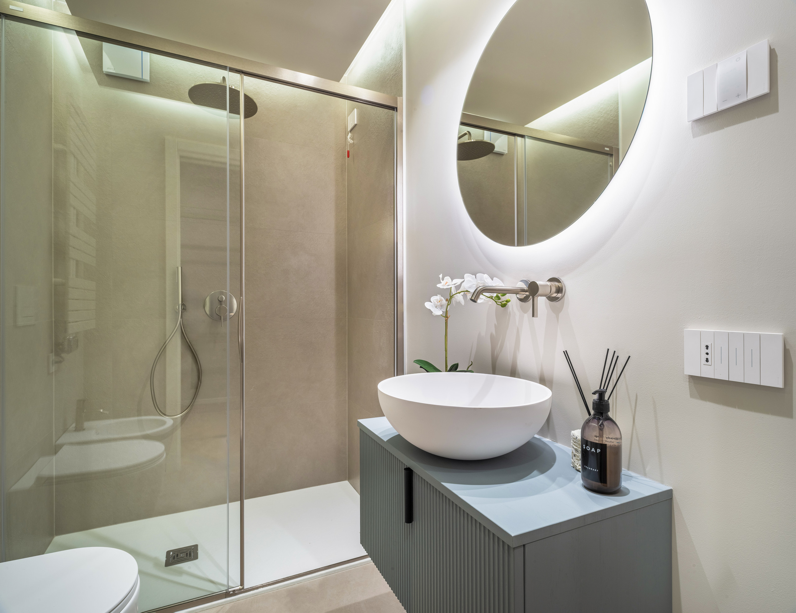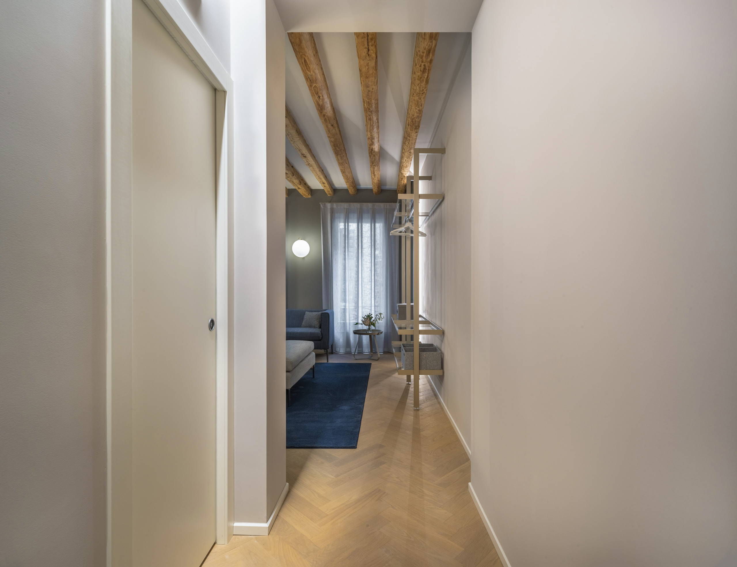 Welcoming apartment on the first floor, recently renovated and furnished in a modern and elegant style. It features two double bedrooms and two complete, new and comfortable bathrooms.