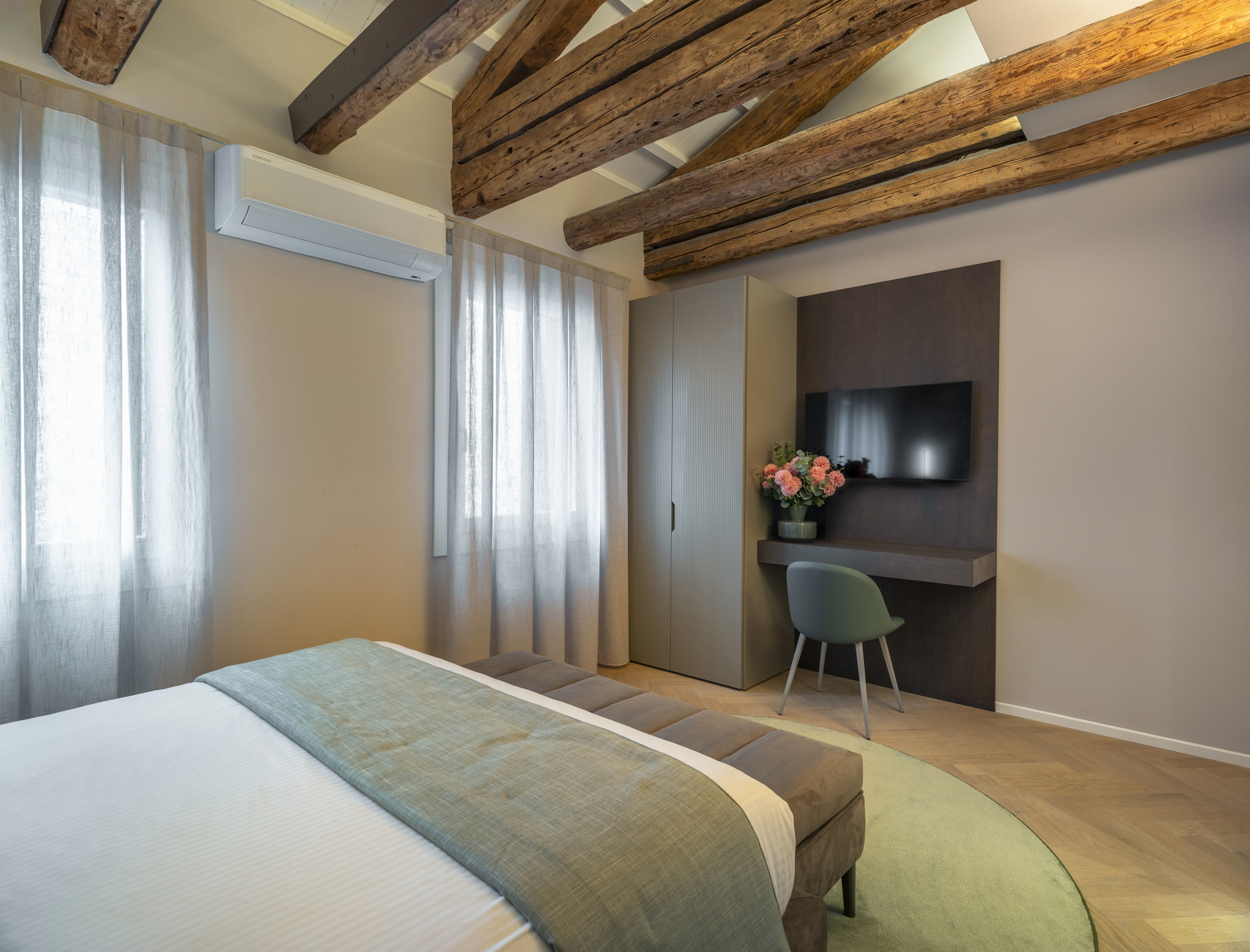 Elegant apartment recently renovated, located a few steps from Campo Santa Maria Formosa. It features two bedrooms, both with en-suite bathrooms, furnished with a refined and elegant style. Bright and comfortable spaces, ideal for a relaxing stay in the heart of Venice. Guests also have access to a pleasant common outdoor area.