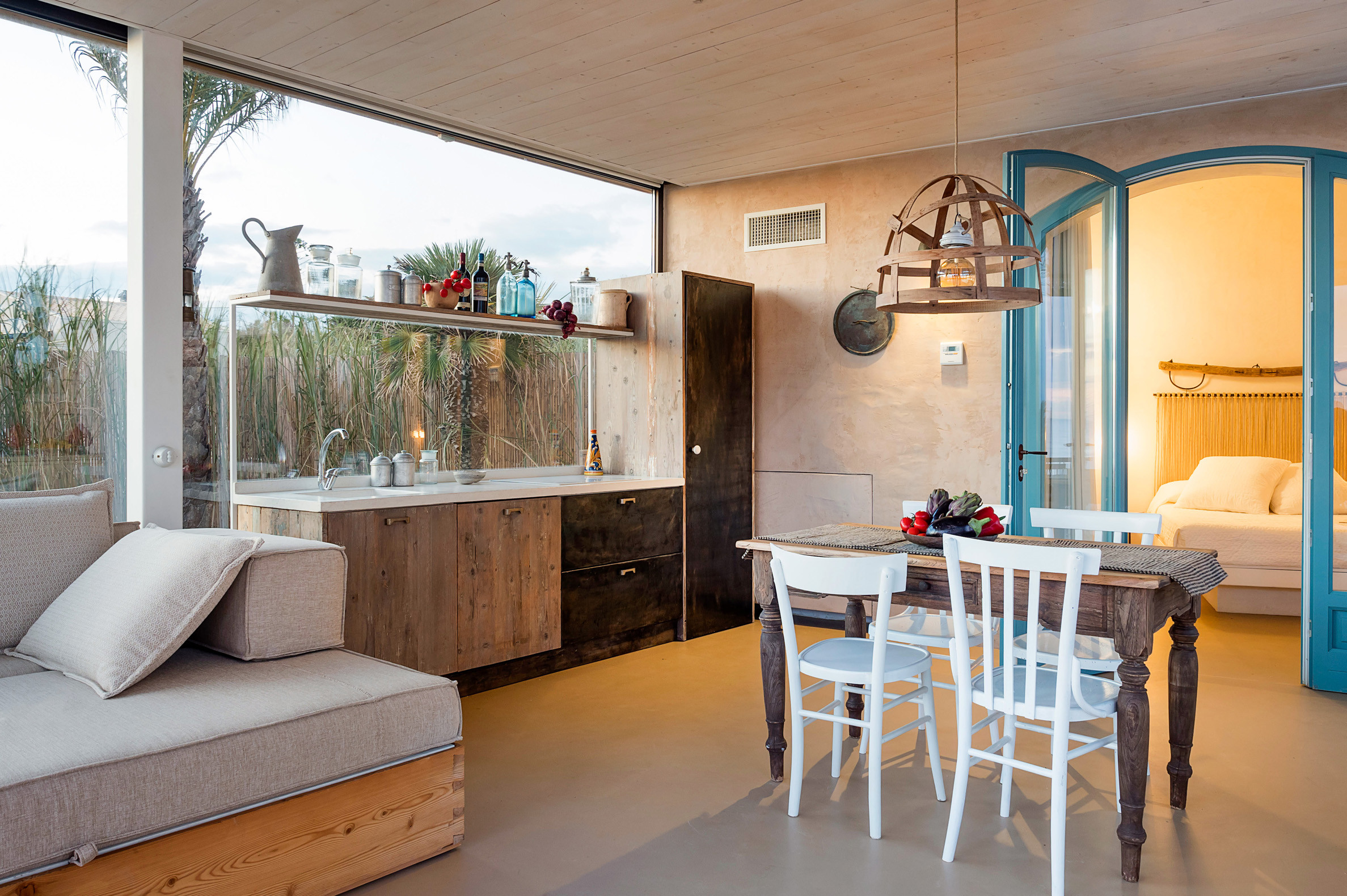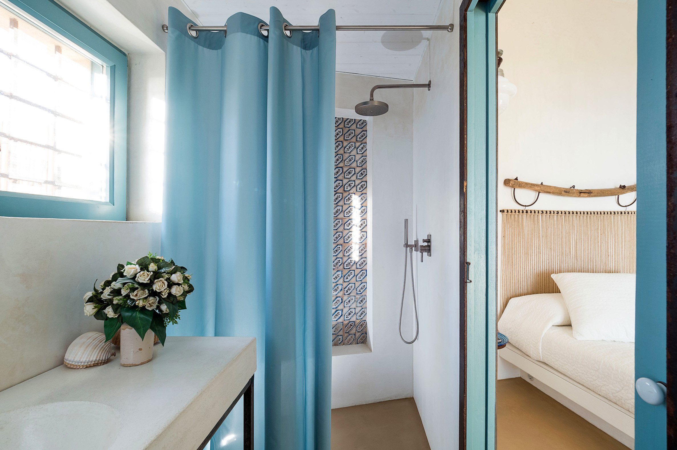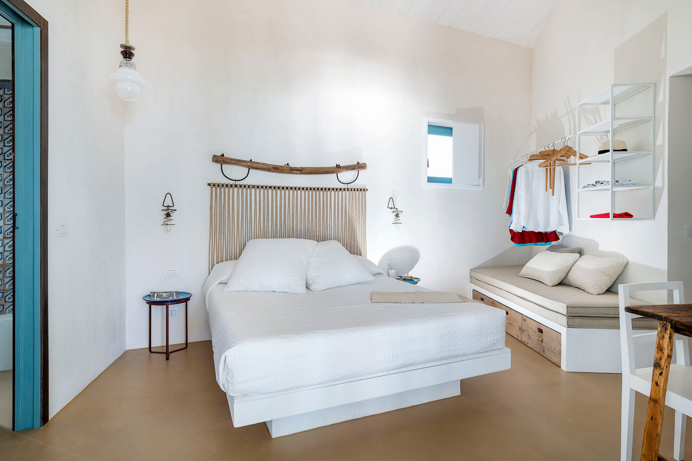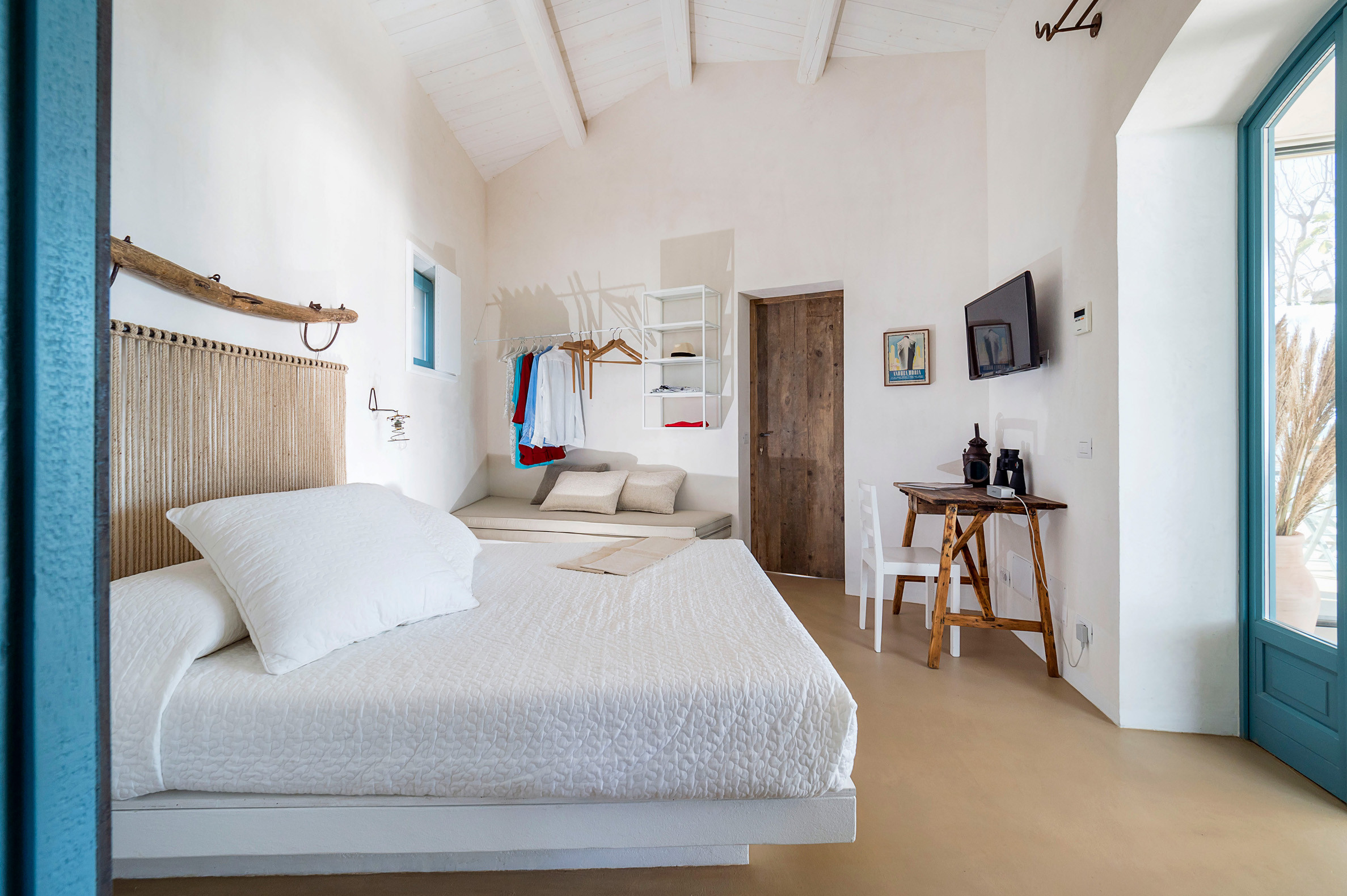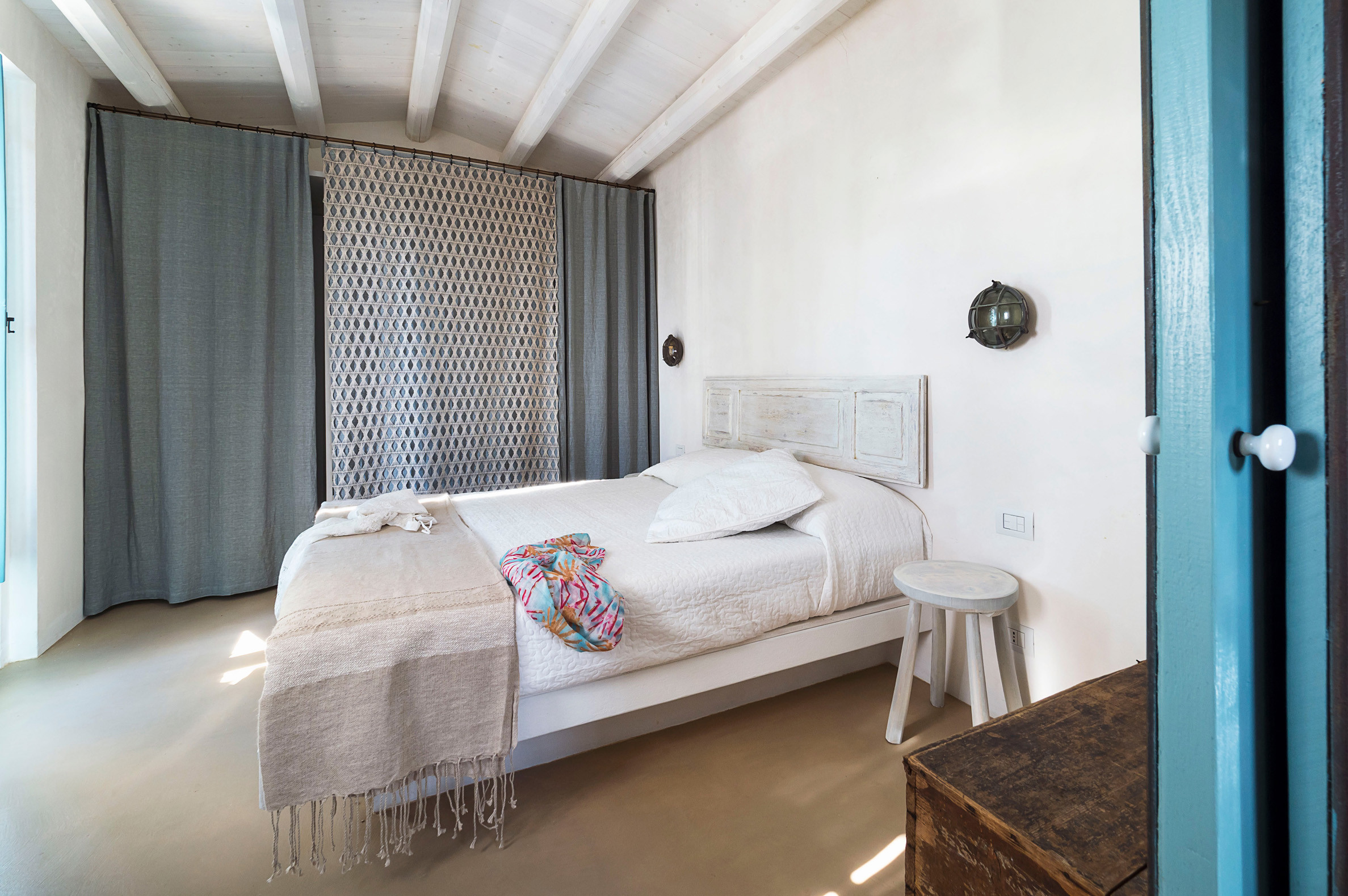 The recent renovation and restyling of the property, with local handicraft materials and creative reuse of authentic antique pieces, was carried out by a top interior designer. A minimalist, chic décor, inspired by the architectural elements, lines and colours of the island, lends an original feel to the house, that includes two romantic double bedrooms, one of which is accessed from outside, two bathrooms and a well-lit living room that with large, full-height windows opens onto the terrace, offering amazing sea views. These comfortable rooms are equipped with all mod cons, such as air conditioning, internet Wi-Fi, satellite TV, Hi-Fi system, washing machine, dishwasher and barbecue.