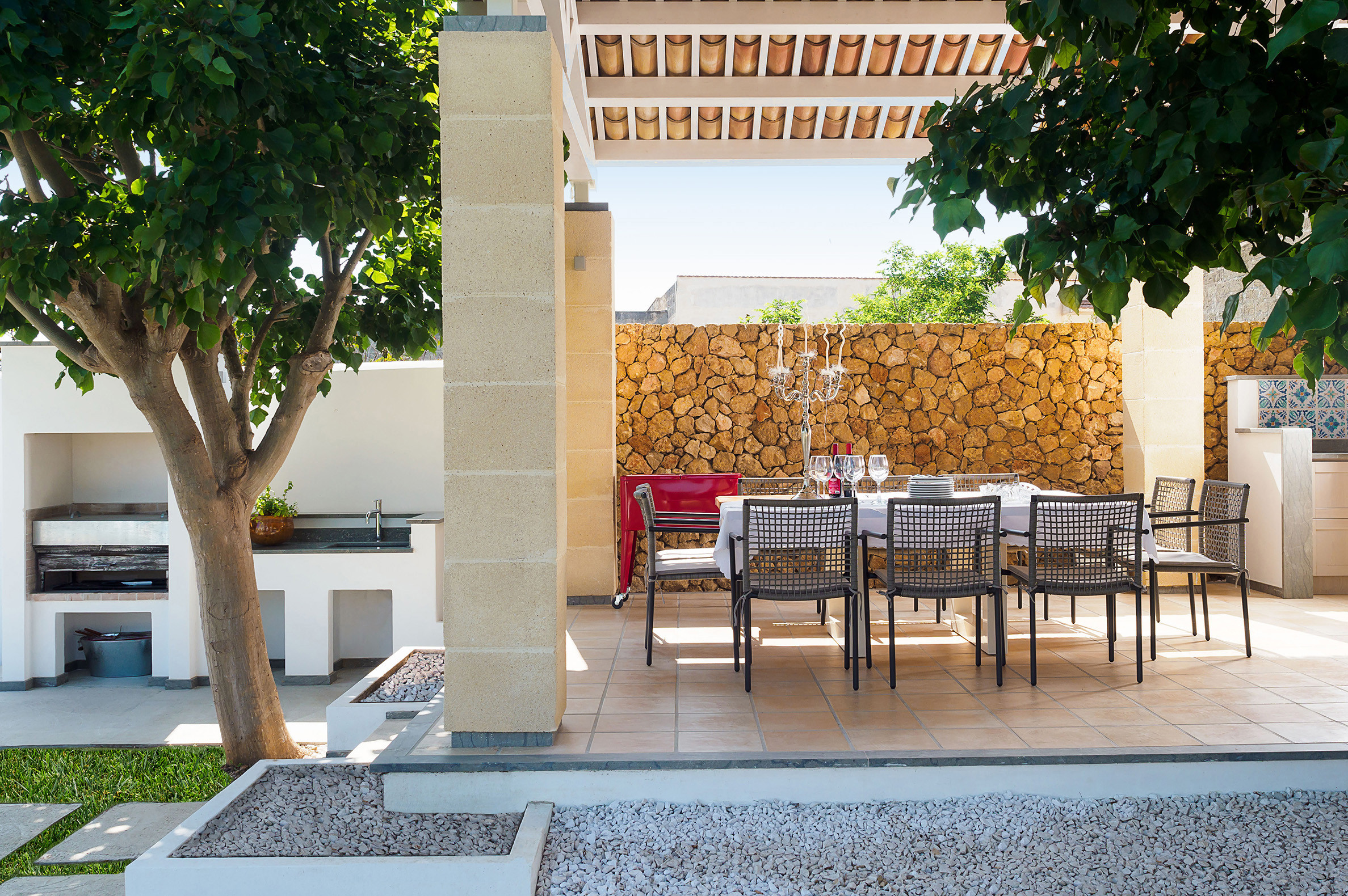 Surrounded by a lovely garden with lawn, ornamental and aromatic plants, Pietra del Sole offers a large saltwater infinity pool (chlorine-free) together with a Turkish bath, a fitness area and a bathroom with shower, a veranda equipped with a dining area and an external kitchen (cooking corner, oven, fridge, dishwasher and bbq).