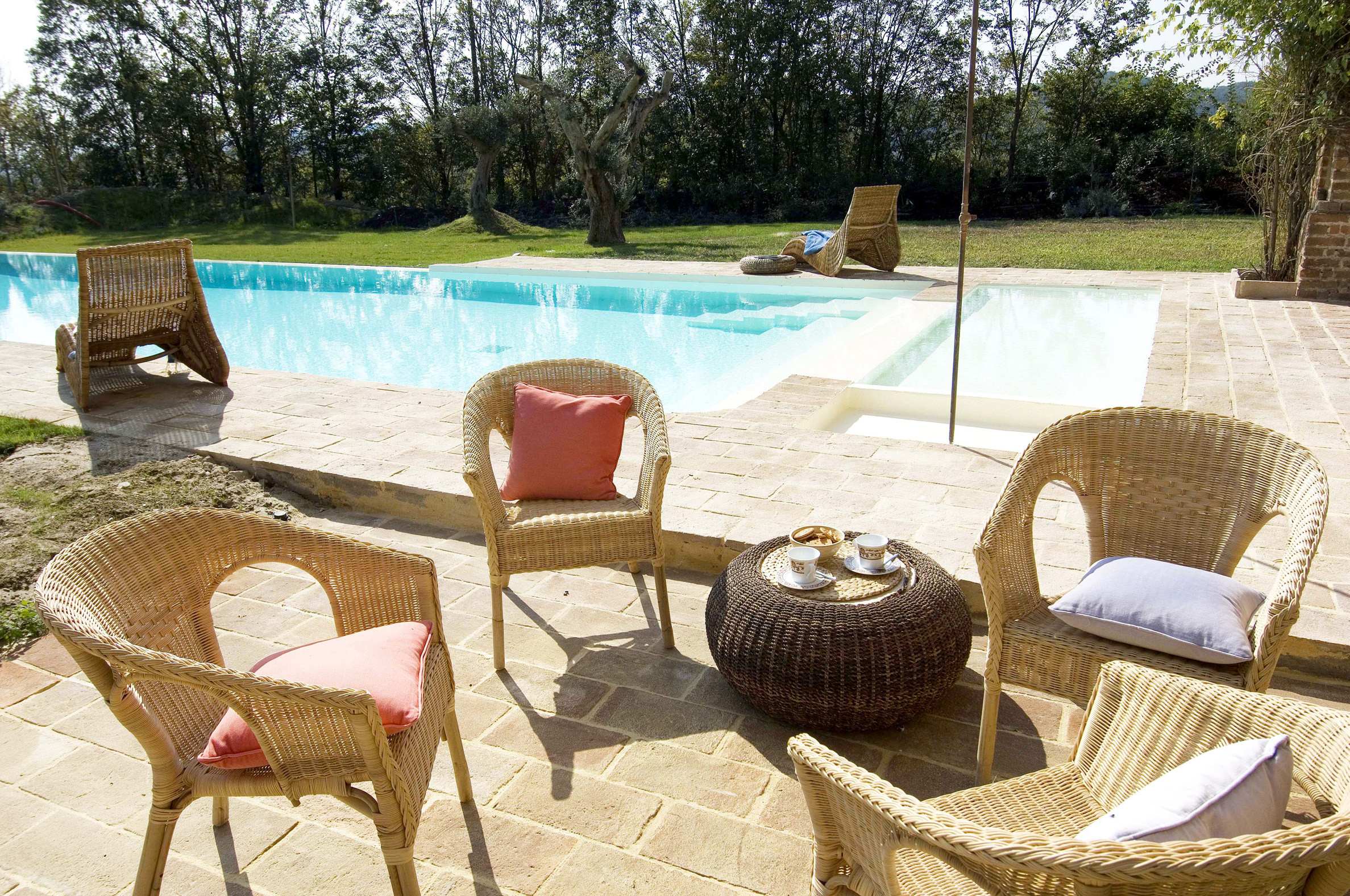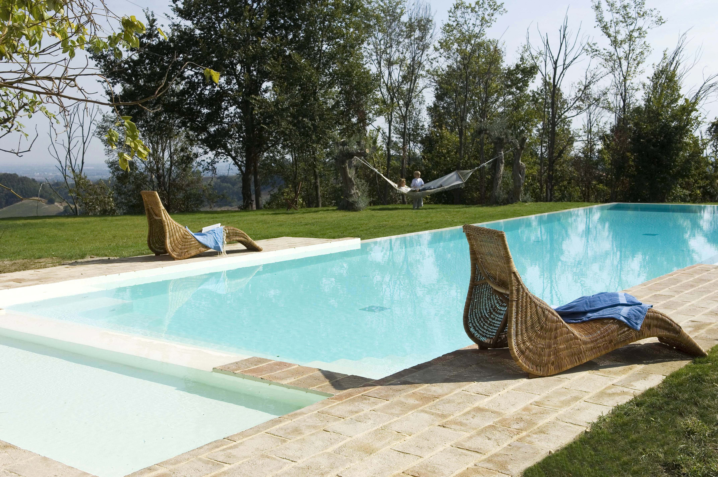 This rustic estate in the heart of Emilia-Romagna is ideal for extended families or a circle of friends. The earthy stone floors, unplastered walls and timbers, and simple wooden peasant furniture lend the house a warm and inviting atmosphere. The estate has rooms where everyone can feel at home, including the particularly impressive, almost nave-like open loft, converted into a spacious living area. Yet all the guests can withdraw to the privacy of the six cosy bedrooms, each equipped with its own modern bathroom. In the large, sheltered garden, the 5 by 18-metre swimming pool seems to enter into a symbiosis with the abundant plant life all around it. The surrounding area on the Apennine hills has a wealth of culinary, fashion and historical attractions to offer: medieval towns such as Vigoleno, Torrechiara, Castell'Arquato, Fontanellato, Italy's culinary capital Parma and Salsomaggiore Terme with its spa and liberty architecture. Tabiano Castle, only a kilometre away, has a good restaurant and a spa area that can be used by external visitors; and don't forget the delicious down-to-earth cuisine of the Emilia region with its fresh food produced and grown locally. Lovers of Italian fashion will find all the sartorial delights their hearts desire in the outlet centre Fidenza Village, home to more than 70 stores with Italian labels at discount prices.