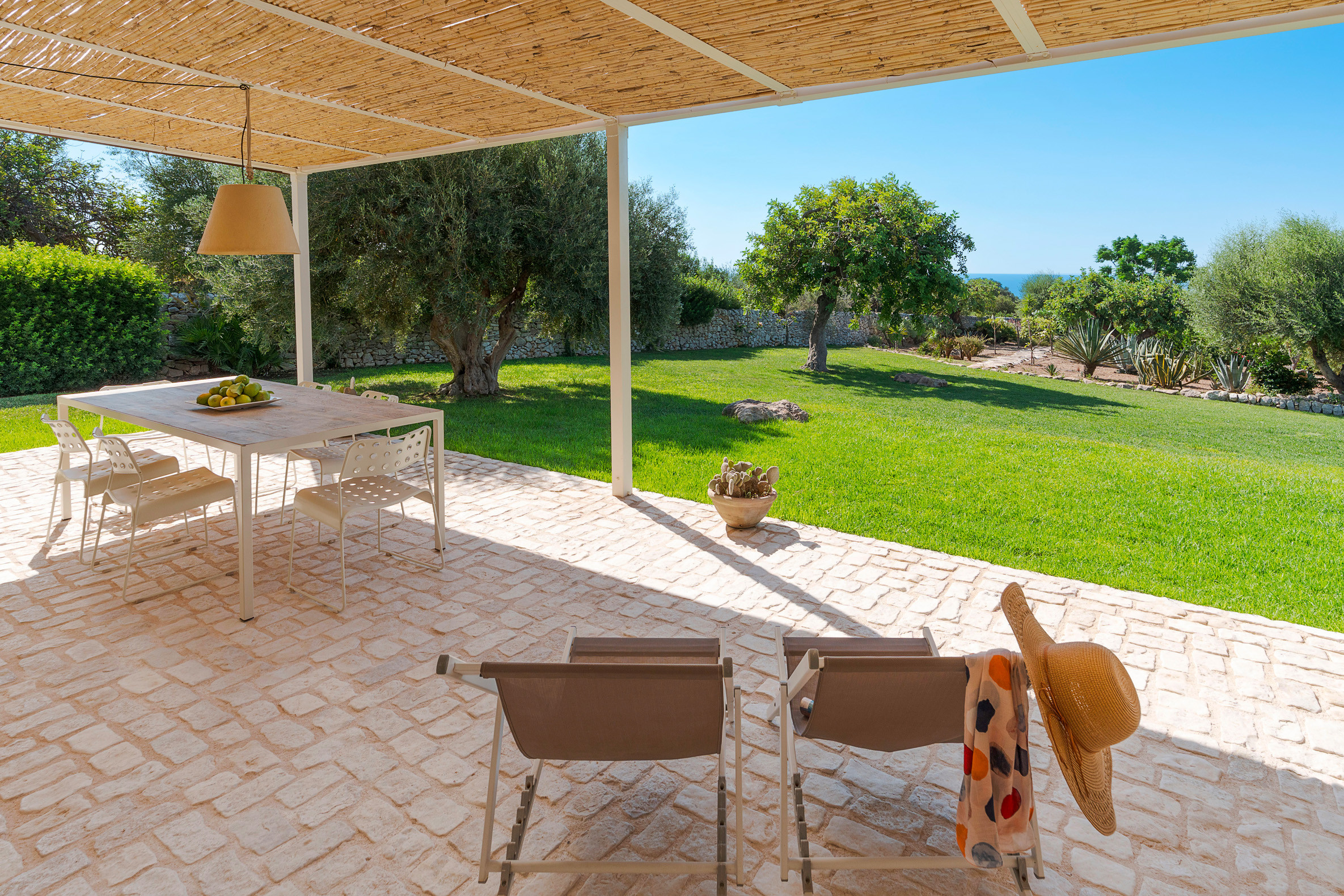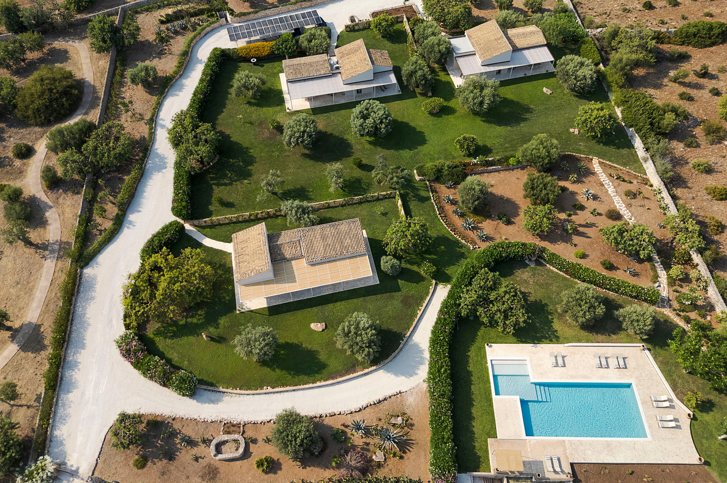 Isla Verde is an exclusive complex of three villas with a swimming pool located in the vicinity of Sampieri, a characteristic seaside village in south-eastern Sicily renowned for its long beach of fine golden sand. Immersed in greenery, but just a few minutes from the sea, the villas have, in addition to the common park and large swimming pool, a large equipped terrace and private gardens that allow you to enjoy a relaxing holiday among the colours and scents of the Sicilian countryside. Arranged on a single level, the houses are characterised by attention to detail and refined furnishings and consist of a welcoming living-dining room with kitchen, two double bedrooms, a twin room and two bathrooms. Totally independent from each other, they are all equipped with wi-fi, ceiling fans, central heating, washing machine and dishwasher. The property also boasts a privileged location: the Baroque towns of Scicli, Modica, Ragusa Ibla and Noto, the beaches of Marina di Ragusa and the Vendicari nature reserve are just a short distance away.