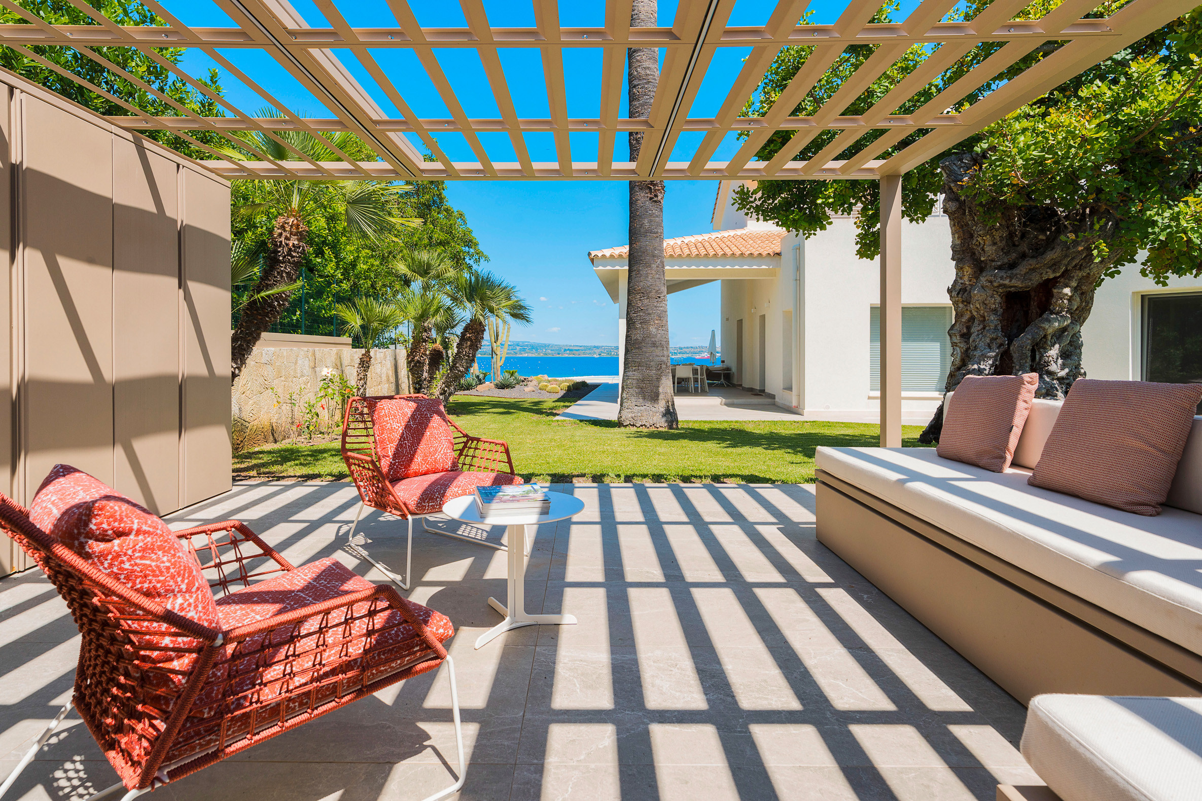 Veranda, terrace, gazebo, garden, pool, solarium, jacuzzi.
